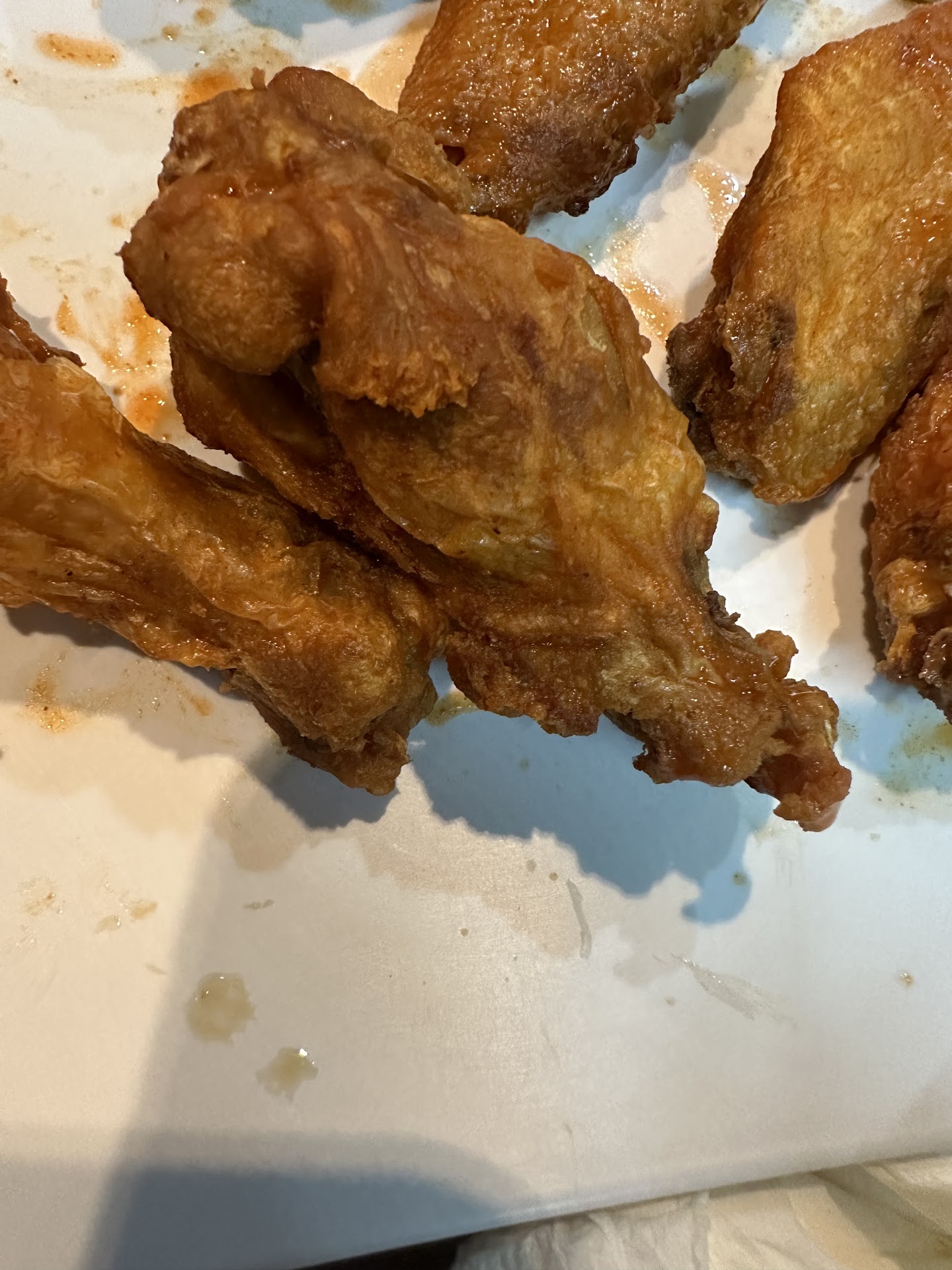 The patrons that were seated, had pizza and chicken wings. Others had big salad with a lot of ingredients in it.