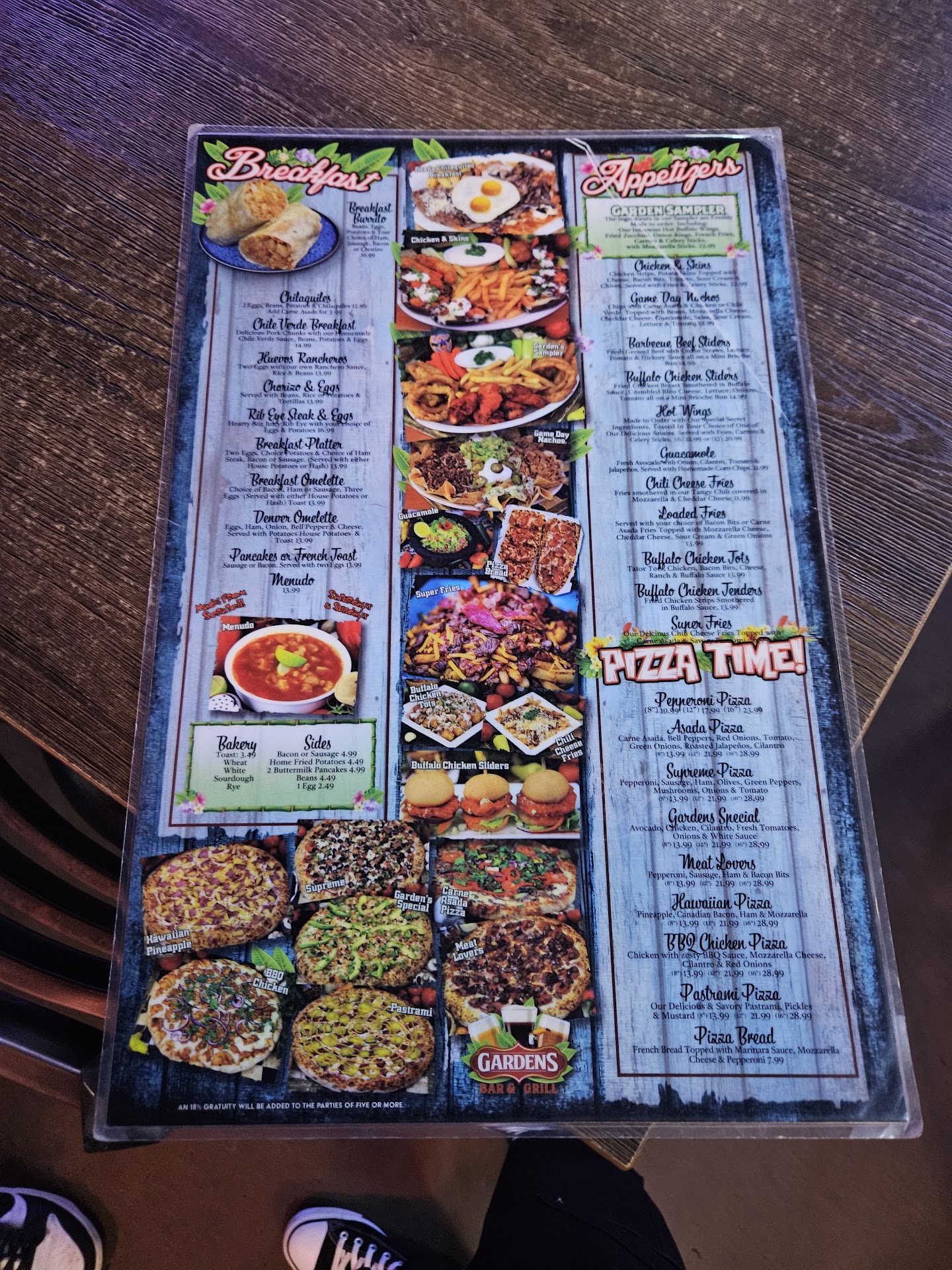 During my first visit to Gardens Bar & Grill, I enjoyed the tremendous relief of the A/C on a scorching day. Our waitress promptly greeted us and was polite and attentive, although I didn't catch her name. We were there to celebrate my birthday but decided not to order any food. The bar offers a wide variety of cold beers served in chilled mugs. As the servers passed by with other customers' orders, I couldn't help but notice the delicious-looking food. Intrigued, I asked for a menu and was surprised by the extensive selection. The bar also has plenty of TVs showing various sports and is willing to accommodate requests for specific games. The Gardens Bar & Grill has gained a new customer, and I will be...
