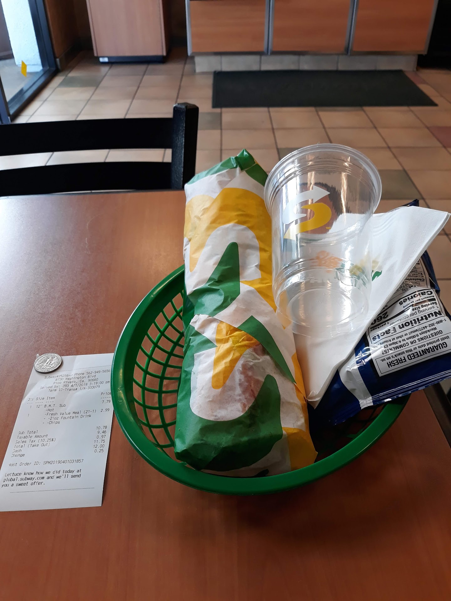 Read moreI eat veggie meals, subways avocado veggie delight spinach wrap is ideal and convenient. I did a low review on another subway, before covoid epidemic, and gave low ratings due to no hand washing. Now, every time i go to a subway, they wash their hands within visual range. At least one good thing came out of this chaos. She did her job and I had no problems. Set 4 star because people are strictly forced to wash their hands now. If just gloves, humans are the vector and the gloves...