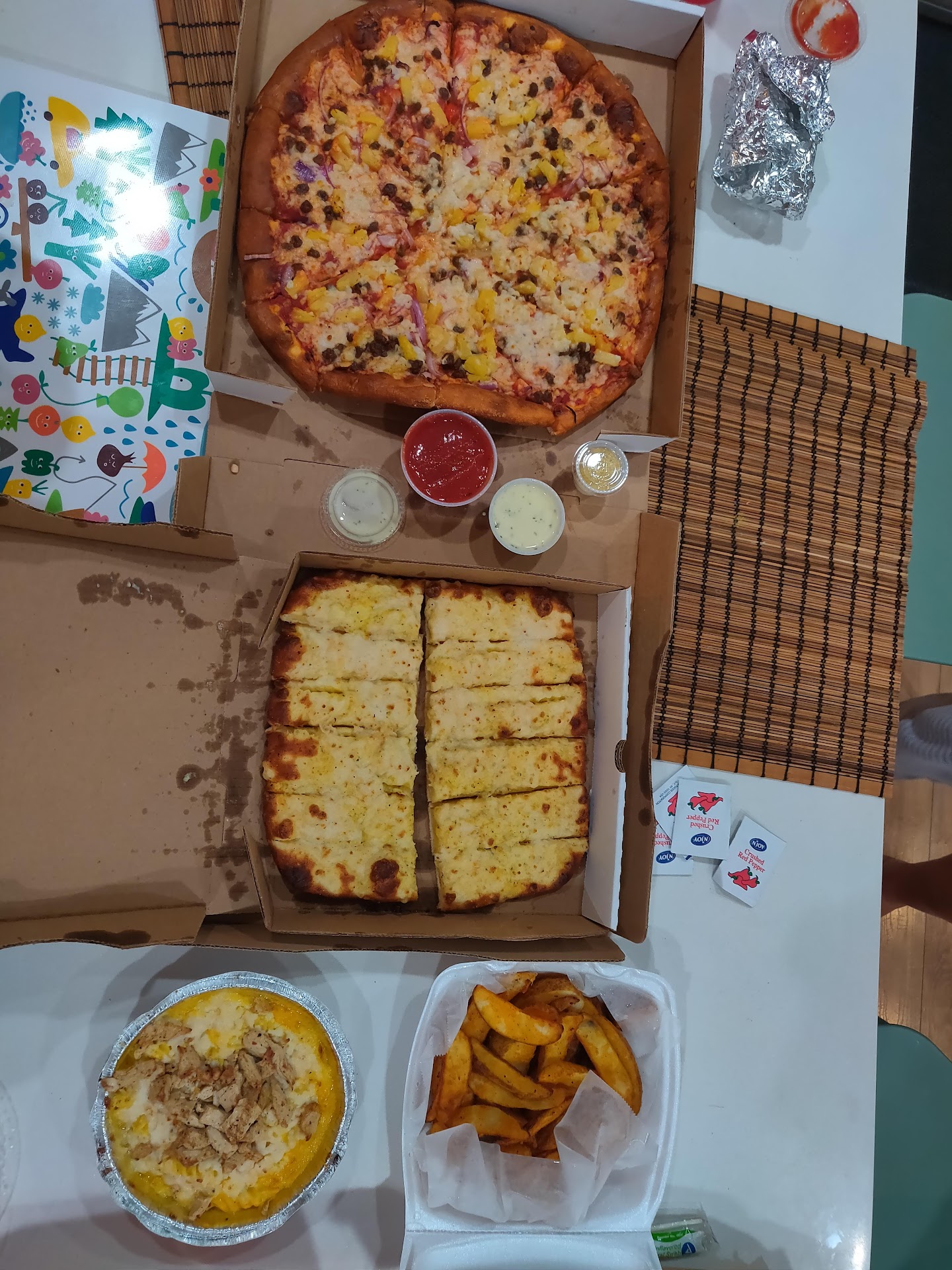 Ā Ā Ā Read moreChecked the reviews and prices called as first time and asked for specials, was pleased to see that prices had gone up on the specials than advertised. I guess more of a COVID price increase. Called to place order and felt like I was calling a call center āpress 1 to orderā. Ordered two medium pizzas and was honestly pretty bland. Was hoping for the East LA pizza or Rioās pizza type of pizza instead was given a very cheap tasteless pizza. Good thing I asked for Parmesan cheese packets. Would of given a second star because it looked good and had plenty of cheese/toppings had two layers of cheese top layer thinner,...