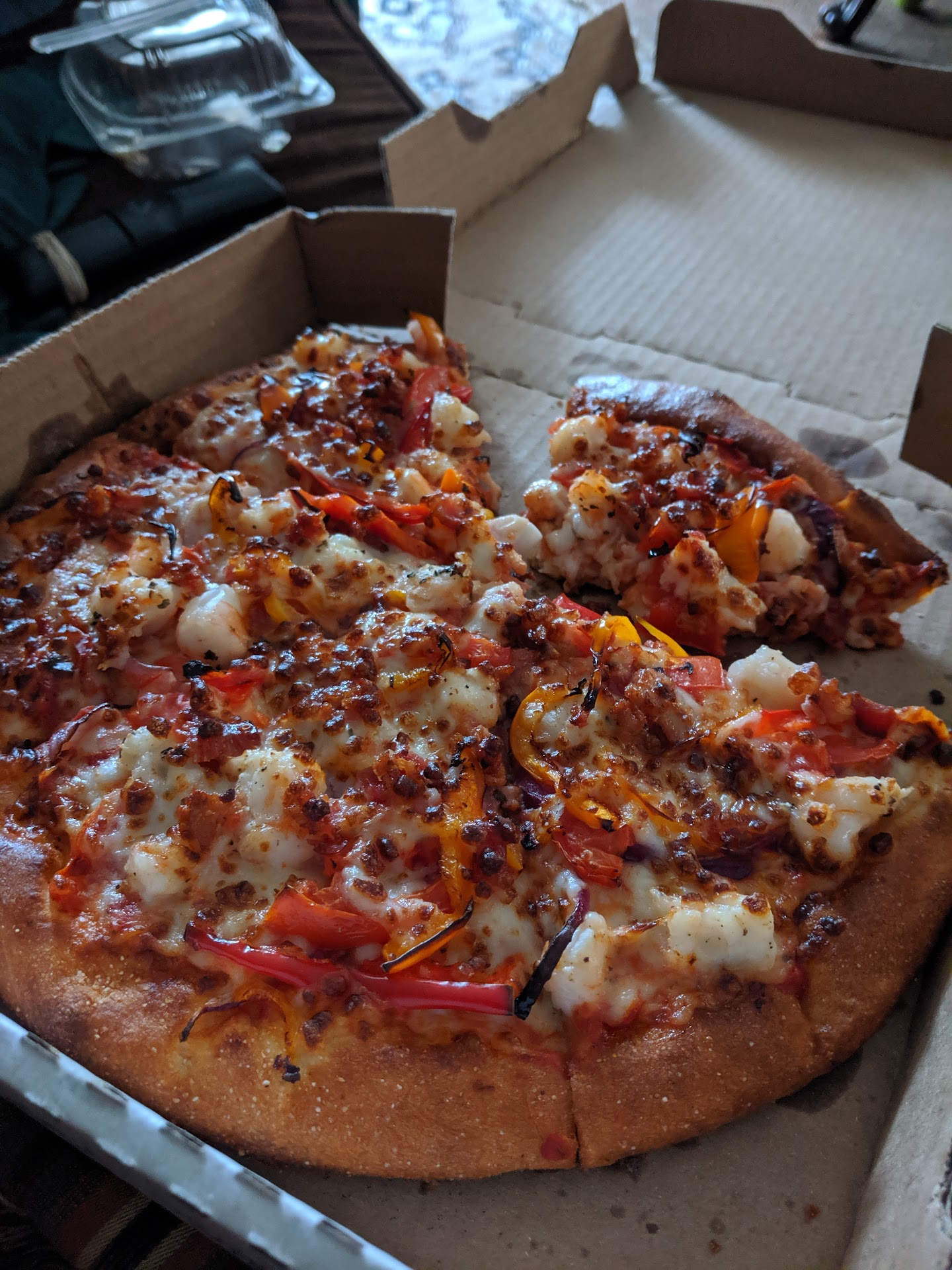 The pizza is great, the crust is just right, and the toppings are fresh. That's the one thing that massively stands out. Yes, the freshness of the toppings matters.