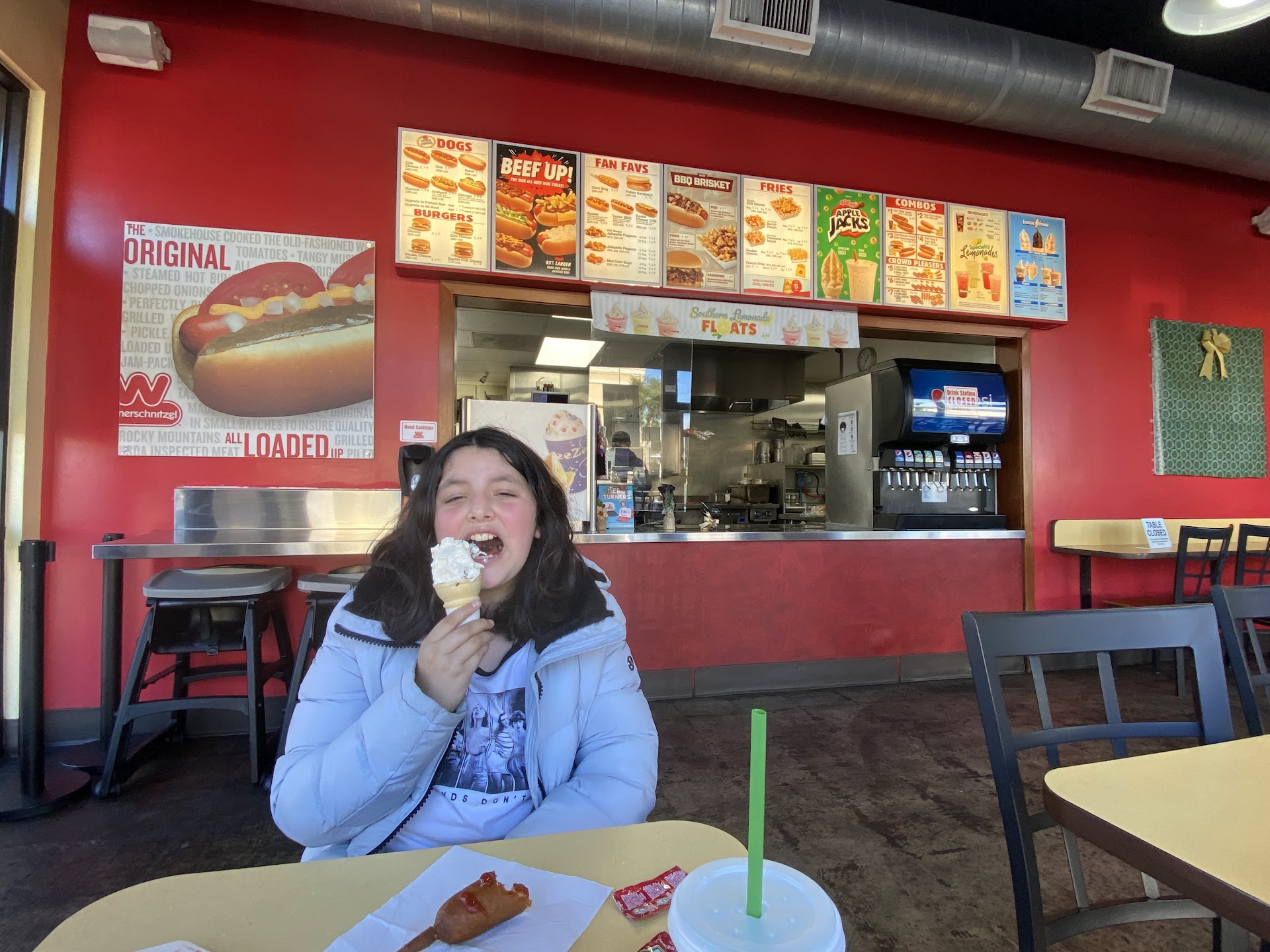 Read moreThis place is not even worth A STAR, first of all, the guy at the register, Anthony, does not know math, second is that 3 other orders that were placed after mine were served before me, Anthony said they were backed up and busy with 5 employees, 1 in the drive thru who was handling her own orders, the 1 guy on the register and 3 cooks, I'm inside the restaurant watching everything, they were not busy AT ALL, third Anthony even served the order wrong, was for dine in and he gave me the order to go, not even complete, doesn't take that long to serve 12 mini corn dogs 1 shake and a banana split when an order after me had 3 chili cheese dogs a banana split and a large chilli cheese fry, and fourth no manager was there, she arrived after I finally received my complete order and not even in uniform!!! What is that about!?!?!? It's stupid ridiculous service. This place needs better, I mean way better employees, service and management. This needs a makeover before a lawsuit. My banana split I asked no peanuts, 3 times!!! I still got peanuts on my banana split!!!!!! I'm extremely disappointed with my visit and honest, I won't be coming back again. Shows why they are...