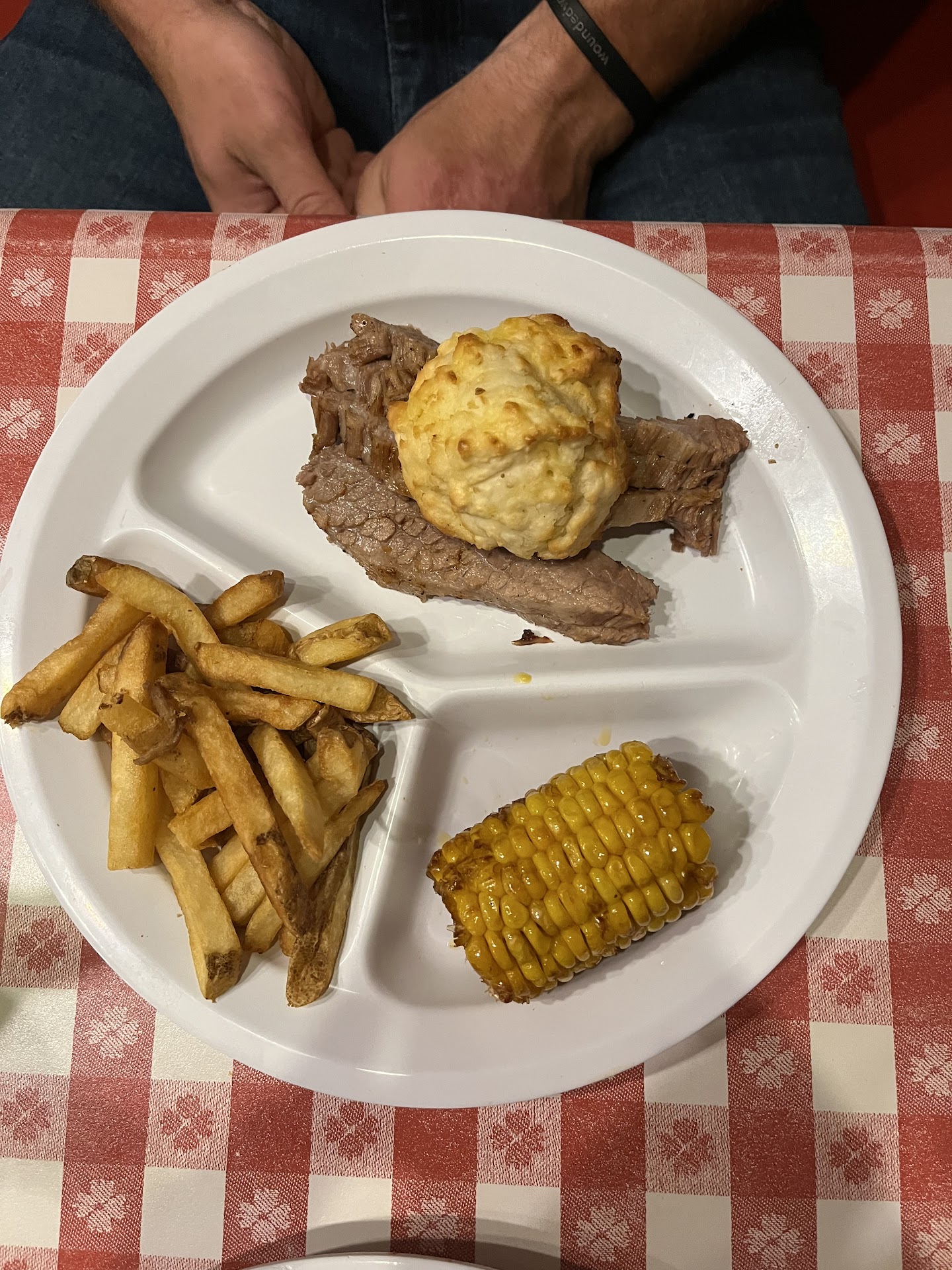 Ā Ā Ā Read moreRead great things about this place but was sadly mistaken. Upon arrival the hostess didnāt even say hello or look us in the eye. Instead informed us that it would be a 45 minute wait. Fine. Weāre in a tourist trap. Itās spring break. No problem. But when I looked into the seating area 1/3 of the tables were empty. But I heard such good things we gave our name and decided to stay. When we get to our table, it was a little sticky. After cleaning our table the waitress comes and asks for our drink order. Since we had already waited 45 minutes we had already chosen our meals. We told her that we already knew, and she seemed annoyed by this. Took our order and away she went. Brought the drinks and seemed somewhat aggressive setting them down. We wait a bit for the appetizer. The sampler. The pickles were amazing. The deviled eggs are terribly underseasoned. The wings, we chose the lemon pepper. I never thought chicken could taste like a sour patch kid. The amount of citric acid in the rub was rather excessive. And the pork rinds were normal. Nothing special. Meal came. We both had the Texas sampler. The fried corn was pretty good. Beans good. Collared greens were nothing to write home about(canned is better). Garlic biscuit wasnāt soft and I guess itās only made adjacent to garlic because there wasnāt much garlic taste. We were rather disappointed with the meats overall. Chicken was dry and tiny. Brisket was passable but again, not enough to warrant 45 minute wait. The ribs were tough. Like real tough. I did not even take it home when we boxed the parts we liked. The pulled pork and the sausage were honestly the stars of the show. They are the only reason the food gets 2 stars. Now the entire time we ate, our waitress passed our table maybe 30 times(we were by the kitchen) and didnāt ask us once how the food was or if she could get us anything else. With other tables she was quite personable and amicable . Ours not so much. Literally had to flag her down for the check and boxes. Then she became full of pep and vim, trying to work on that tip I guess. Cleared all of our stuff and took the check. Overall worst bbq Iāve had in a long time. Even if someone else was buying, I would...