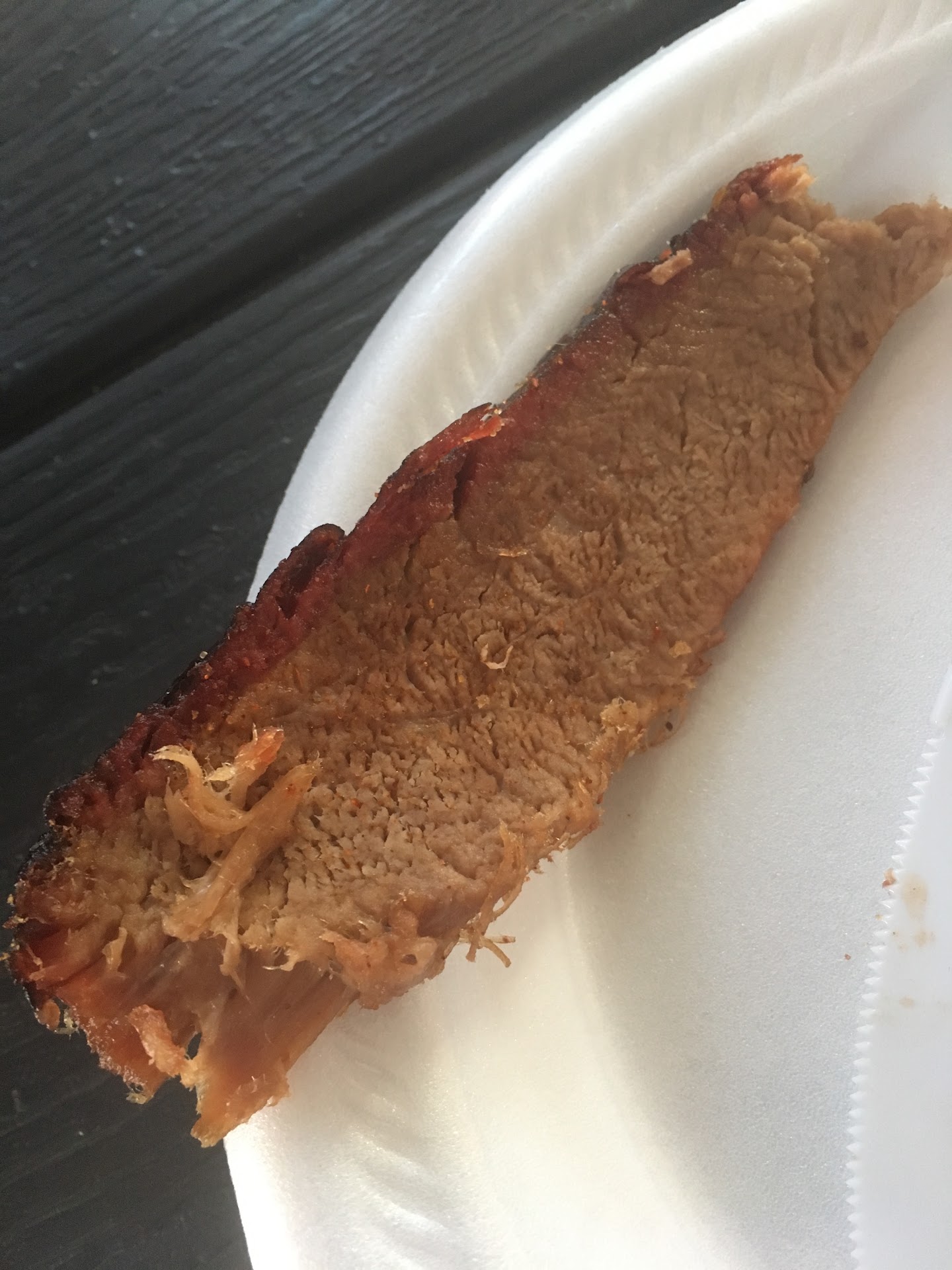The Brisket did not have much smoke and barely any crust or smoke ring.