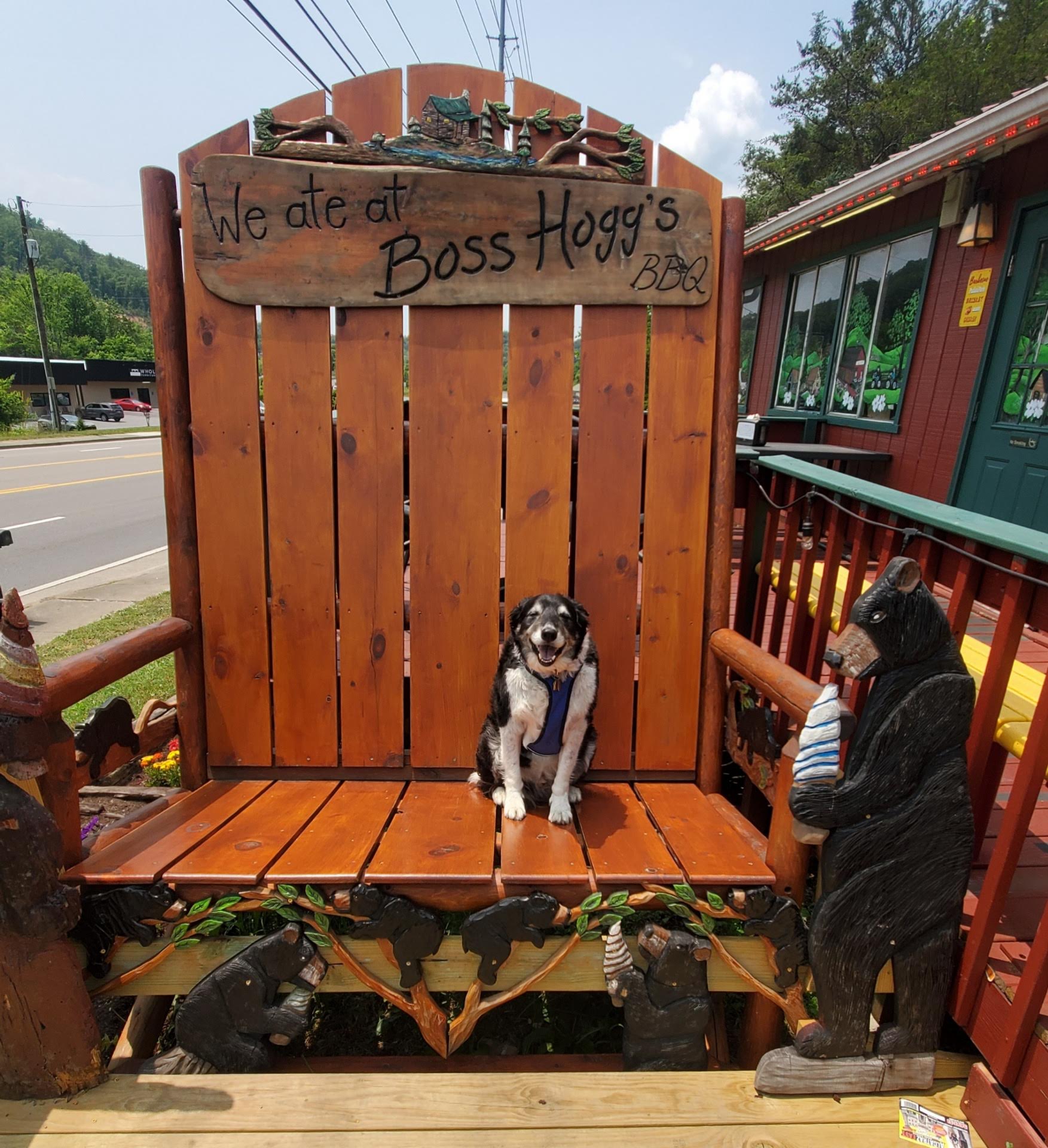 Read moreFri. 5/26/2023 Memorial Day wkend. Will make sure our friends / family know about Boss Hogg's BBQ..Very pup friendly, large nicely setup very well covered outdoor seating for most any weather. Country music playing. Plus quaint indoor seating. Can't say enough good things about this family owned eattery. Even homemade desserts. 🤩HUGE SHOUT OUT PLEASE GIVE THIS GUY A RAISE/PROMOTION ❤ Between 12:30-2pm the young man that took care of us was super helpful & accommodating. Have helpful area suggestions & checked on our needs very often. Great ambassador for Wears Valley Area. We were more than aggravated & tired of researching & driving Pigeon Forge/Gat Area for ANY PUP EATTERY!! All this time had no idea it was this close/ hidden gem will always stop there each yr when in the area. In Pigeon Forge Sevierville area the lack of hired help & discontinuation/ unmanned outdoor eating areas for families with even old friendly dogs has turned us off to that other heavy tourist area. Was last there in 2020, it's just not the same. Will now stay in Wear's Valley / Townsend 🌈👍.