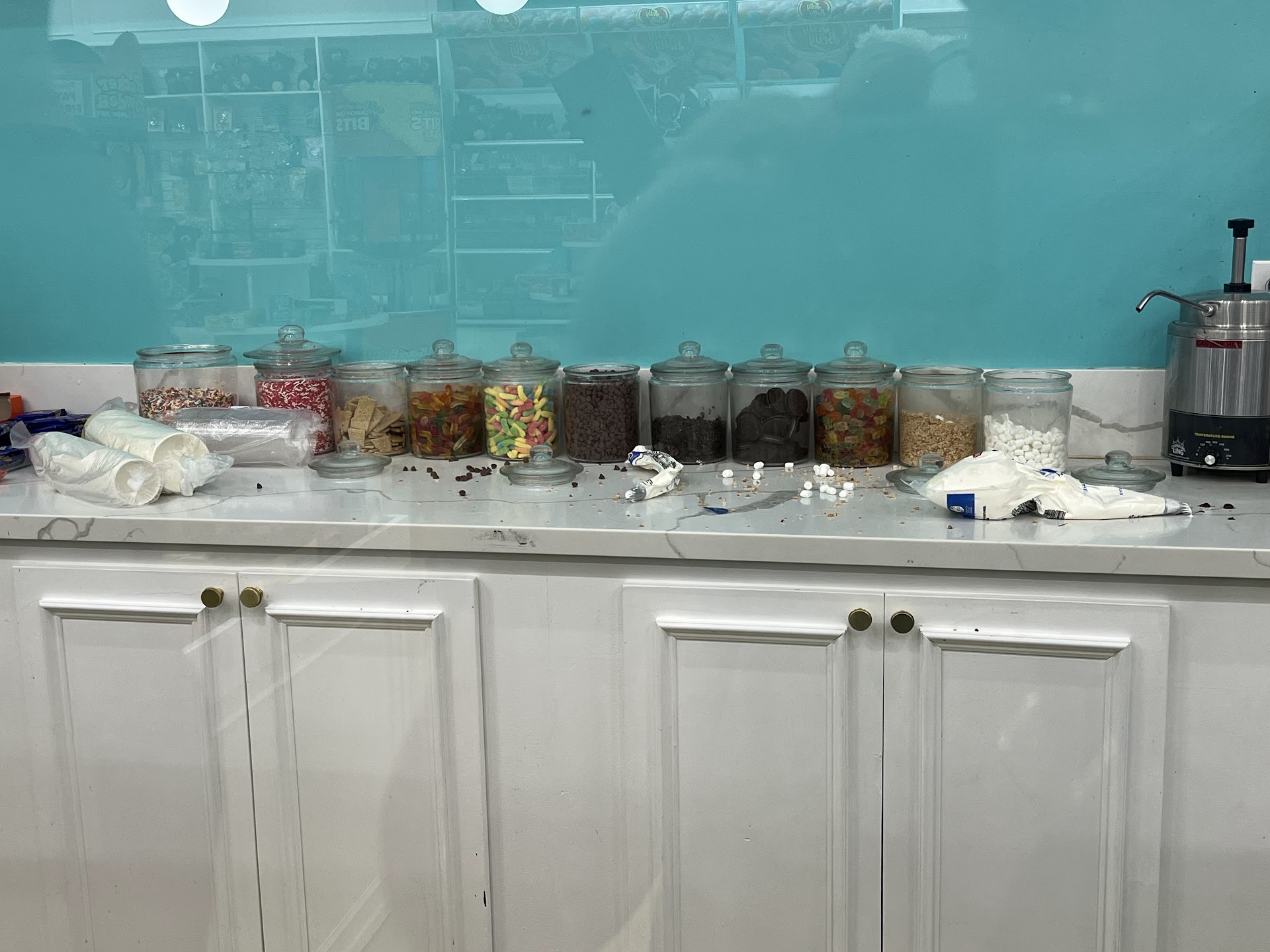 Read moreHighly unsanitary. Walked in, stood in line long enough to survey the ice cream options and realize how unclean it was, and then we left without even ordering anything. I did inquire with a worker about getting an allergy scoop of ice cream for a child with a peanut allergy, to which she replied she could “rinse off the spoon with water” before scooping his serving. Very concerned she was implying that rinsing off the spoon was not a standard part of serving someone. See attached photo for the toppings counter- Can’t even be bothered to keep the lids on the containers. Good luck eating at this place without...