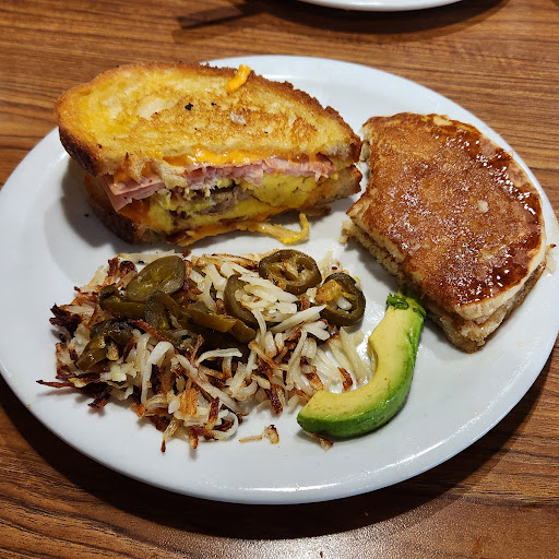 Cons: One knows what who is doing what. 2 people seated us. Then one hostess stayed to take drink orders. But did not get the drinks. Told us our waiter would be right us. Something came to take our drink orders again, but someone else brought us our drinks. Then a waitress came to our table, without her checkbook. Said she'd be right back. (Never came back) The hostess then came back to our table and took our order. No shade here but I could not make out a gender, so their pronoun will be "they" "They" had no idea of the menu. So "they" just wrote what we said. We waited for over 20 minutes for our food to arrive. Mind you there were only 6 other tables seated, out ove a 50 or so table diner. Ok so we have food now. I ordered a grand slamwhich, and hash browns, with cheese. What I got was a sandwich that could have been used as a sanding block. Sanding blocks are actually softer. It cut up my mouth in multiple places, including inside, and the corners of my mouth. I was literally wiping blood off my face. And the hash browns had a small pile of shredded cheese on it. Cold un-melted shredded cheese. The I think my actual waiter set it in front of me then looked at it and realized what I got and asked if I wanted my plate microwaved. I agreed and he took it to be re-heated. Now let's move into my girlfriends order. She ordered a grand slam. ( 2Eggs 2 bacon, 2 sausage a bread and 2 pancakes) She asked for her eggs to be over easy. Double bacon, instead of sausage and bacon. Toast, and hash browns instead of pancakes. She got, well over hard eggs 2 sausage, 2 bacon, toast, and 2 pancakes. No hash browns. While the waiter was reheating my breakfast she poked her eggs with the fork, no runny yoke. She then tried to spread the butter on her toast. It was cold and would not spread nor melt, because her toast was cold. She's handed me her sausage. Upon picking the sausage up she noticed how cold they were. She dropped them on my plate and it made a loud ting sound, like she dropped a chapstick on my plate. I grabbed one of the sausage links and tried to tear it open. Jerky tears better than that sausage did. The waiter returns with my breakfast and we inform the waiter of her breakfast issues. He heads back to the kitchen to get her some more bacon, have the eggs remade and get an order of hash browns. The hostess comes back with bacon, then later our again I think our waiter returns with the hash browns and our check. The check for two breakfast plates came out to $50 so we start reading the itemized list at which point we realize we were charged for all individual a la carte items. Including a second side of bacon and side of hash browns. While I continue eating my microwaved breakfast my girlfriend goes to the front counter to address the manager on all of this while she's away the waiter realizes that he charged us for hash browns and gave me a new check with that removed. All in all horrible experience for now the third time. Our meal was comped and I left my bloody napkin...