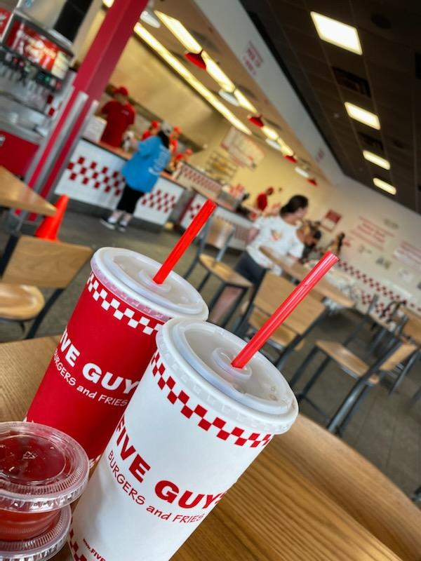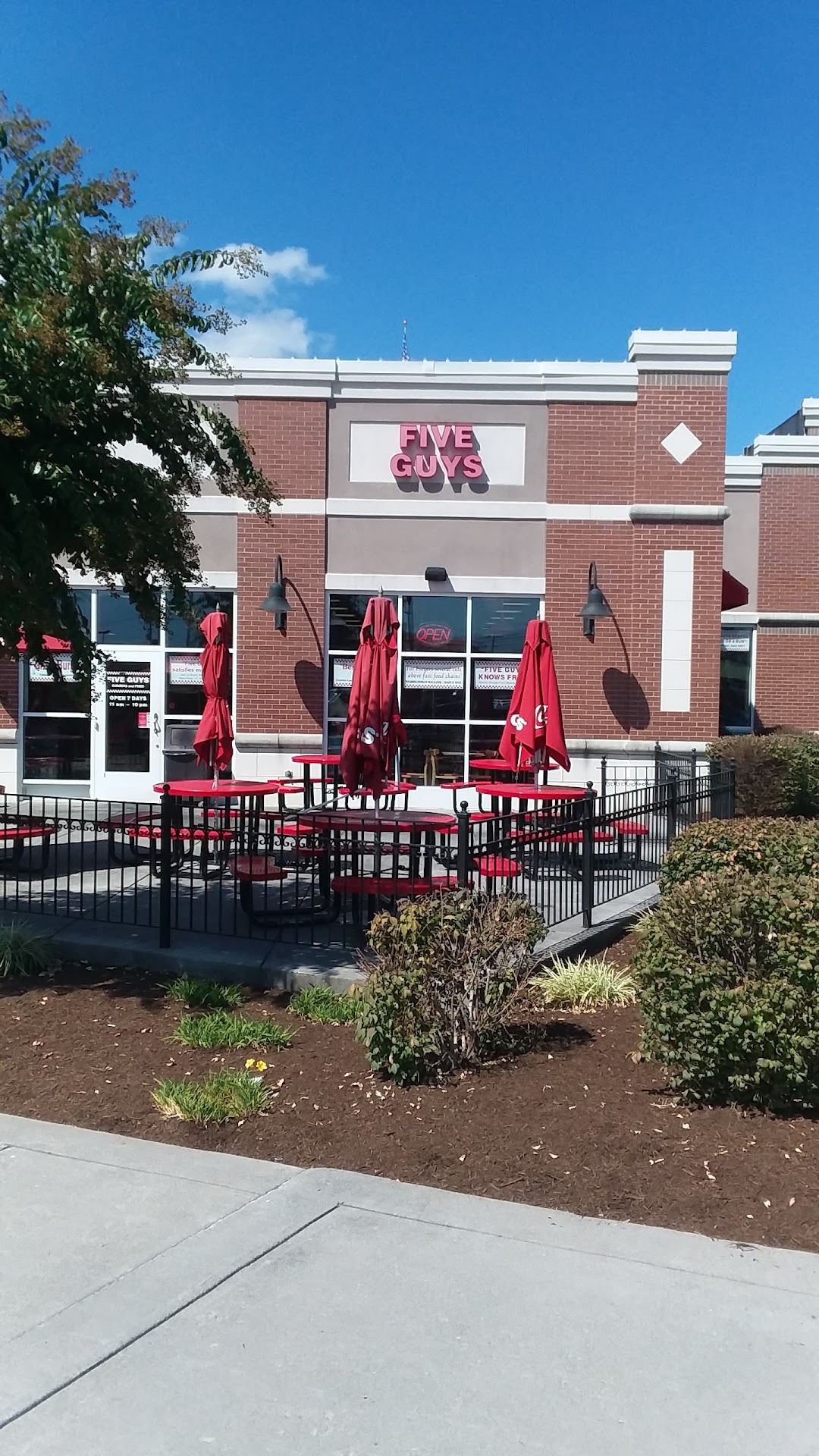 Read moreI love five guys and if the staff were a bit more friendly I would have given 5 stars.i was greeted at the door and told by a staff member 'the only 4 top available is over there, if you need more room you gotta eat outside because I cannot push tables together, they won't let me.' Well outside was hot and sunny and we had an infant, a toddler and there was no umbrellas or shade. We ordered and crowded around the four top to wait The food was great but the staff not so much. It was payday and as I was tryjng to pick up the food and get drinks several employees were clustered together in the pick up area waiting on checks and talking. Maybe they should have a different area for this as the front is always busy with customers. I have ate at this five guys before and had no issues but this time was not a...