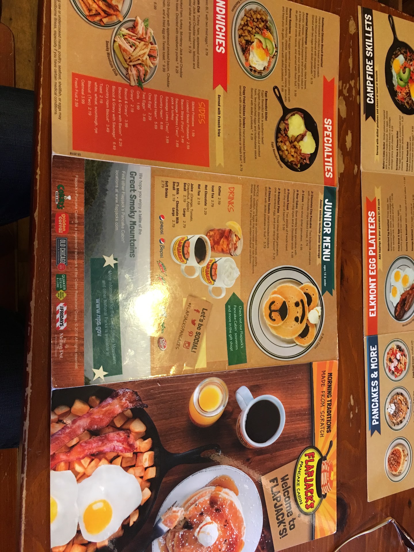 Read moreI have been to other Flapjack locations and always had good experiences so while on a trip I wanted to take my company to try it. We had a 50 minute wait to start, which is about normal waiting for the restaurant. Once we got seated the tip from the previous customers were still on the table under the coffee. The table had been cleaned but the waitress had not picked it up. After about 5 minutes she came over, got her tip and asked if we were ready to order. We ordered our coffee and food at the same time. She brought our coffee to is within a few minutes and said she would be right back with creamer. After waiting about 20 minutes I went and asked for creamer and silverware. I got ONE set of silverware and 5 small things of half and half. I went back to our booth and waited about 15 more minutes then our food came out. Our syrup thing was completely empty so I asked for that, more creamer and another silverware. She brought us those promptly. Our food was not good at all. The pancakes were so dry, the bacon was not even completely cooked after asking for extra crispy and no drink refills. I hate to complain at a place like this because I know it's busy but it was a completely terrible service experience and food. I did tell the waitress when she asked about all of this. She said she was sorry and gave us our bill. We didn't see her anymore at all. We still left a tip of about 13%. We will try other locations...