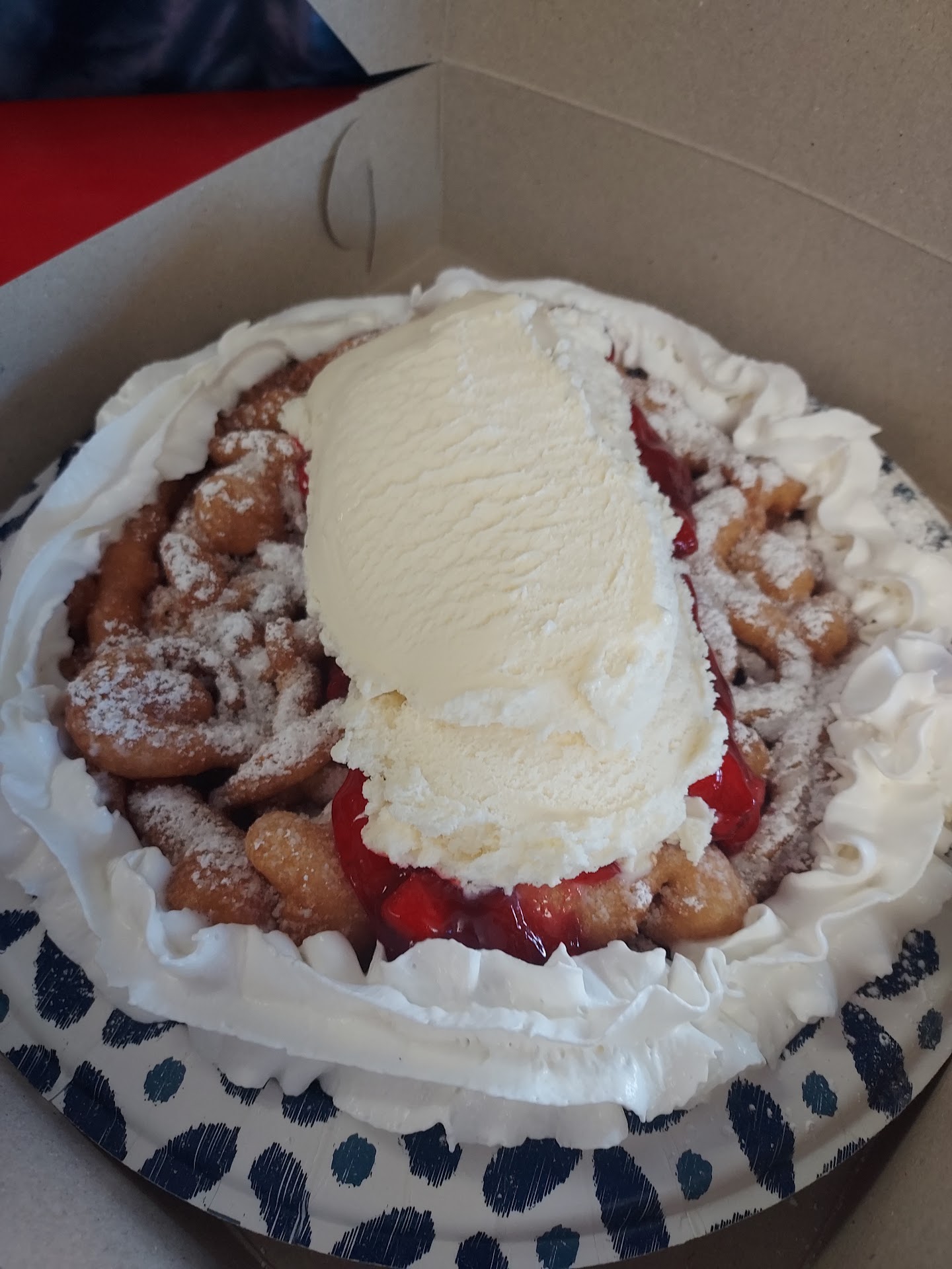 Tried calling to see if they were open but their phone was disconnected so we didn't think they were still in business, but they were. Everything about the funnel cake was wonderful! The strawberry sauce was not too sweet, and the ice cream was creamy and delicious. The woman that made it was kind and it was just a great experience until we met the owner. We were traveling a long distance, so we decided to eat in our car. Once we were done, I walked to the garbage can that is in the front of the store and went to throw the box the funnel cake came in away. I was met with a crotchety old man blowing cigarette smoke in my face wearing a funnel cake factory t shirt. He yelled, do not throw that away in my garbage can. I asked why not? He said because he has to empty all the cans every night, but he doesn't have to for the complex garbage cans and instructed me to walk down to the other cans. I said this is from your business so I should be able to use the garbage can in front of your store. He said if you were eating it to go why did you ask for a box- those boxes cost me money! I said I didn't ask for a box, she just gave it to me that way. He said you should have asked for a plate! I said I have never been here before and I don't know how they come. He continued to blow cigarette smoke my way. I told him he needed to learn how to treat people and asked him what made him so mean and threw my box, that I didn't ask for, in the trash can anyway. I'm not going to lie- this was the best funnel cake I had in my life, but the customer service ruined it, and I will...