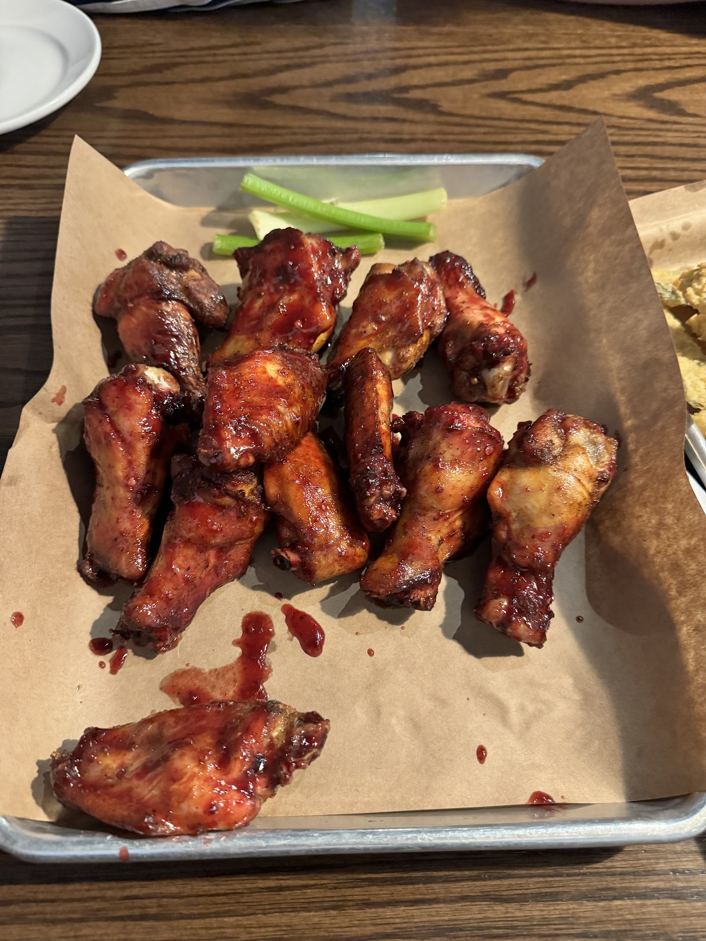 We got a coupon from a store a few shops over for free fried pickles, so we started with those and the smoked wings with blackberry sauce. The pickles were kind of boring but fine. The wings were excellent, both the smoky chicken and the sauce were delicious. One of my sons got a burger and he said the mashed potatoes were the best part of his meal and his potatoes were watery and bland…. He said it tasted like they forgot to put any sauce on it but by the time our server came back he had finished it anyway. My other son got the Nashville Hot chicken sandwich - the chicken was juicy and the sauce was smoky and flavorful. Both he and I got the Brussel sprouts. He didn’t like them because he thought they were too sweet but my bf and I enjoyed them. I had the chicken salad sandwich and though the meat was well smoked, the sandwich was very boring. My bf got a burger and enjoyed it. His grits were also tasty. We tried a side of the bologna (just ok) and pastrami (pretty good just a really salty). My kids said that the meal wasn’t their favorite and that it wasn’t worth the price, which we had to agree with as this was the most expensive meal of our trip so far (well over $100), and it just wasn’t that kind of experience.