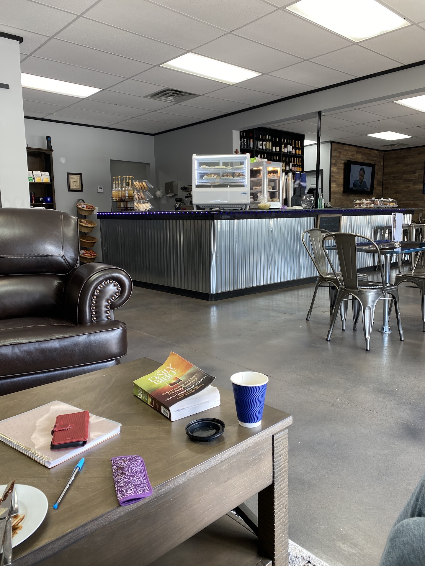 Read moreWe desperately want this fine little coffee shop to make it, but there are a few things we would suggest. One is visiting an upscale coffee shop in Nashville or Memphis and take some tips on coffee preparation in the various modes. Though an Italian cappuccino is quite small, most regional shops including Starbucks offer different sizes. The staff was a bit flustered at the suggestion of a medium. The interior décor is really great. Well furnished. Nice leather big seats and love seats plus side room and attractive steel chairs and tables. Fantastic croissant with strawberries, bananas and chocolate drizzle. But the biggest issue is that there outdoor sign on the building is almost no visible from the highway. If I was trying to make a go of the business which to succeed must draw in customers from outside the area, I would put a lot of money in signage with few elements. It just doesn’t work at all. We will come back but I am hopeful for the cafe’s future that a new sign in the building plus one out on the highway will get...