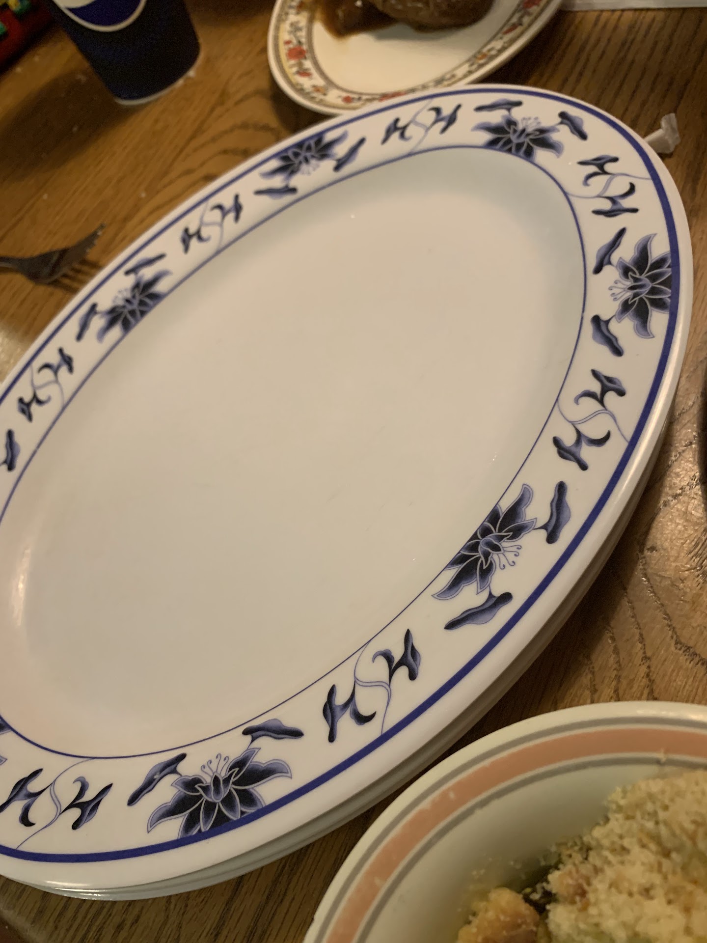 The dinner that night was a combination of fried chicken, meatloaf, turkey gravy and stuffing, and green beans. The only thing that was warm was the stuffing, which along with the turkey actually tasted pretty good. The green beans were straight from a school cafeteria quality can and we didn't even eat them. The meatloaf was average and not cold but not at all warm either, totally unappetizing. The strangest thing about the dinner was their world famous chicken. The marketing for this place says they worked on the chicken recipe for two years to get it right. I swear the chicken we got was under the heat lamp for two years before it was served to us. Furthermore, my wife and I looked at each other laughing about the fact we couldn't even distinguish what part of the chicken it was on our plates. It was rather unappetizing and the fact that it was old chicken made it taste terrible, what little we ate. Really turned us off. I ran out of beverage but no one came around to refill. The jam sauce with bread was the highlight of the meal. The dessert cobbler was not spectacular but not awful.