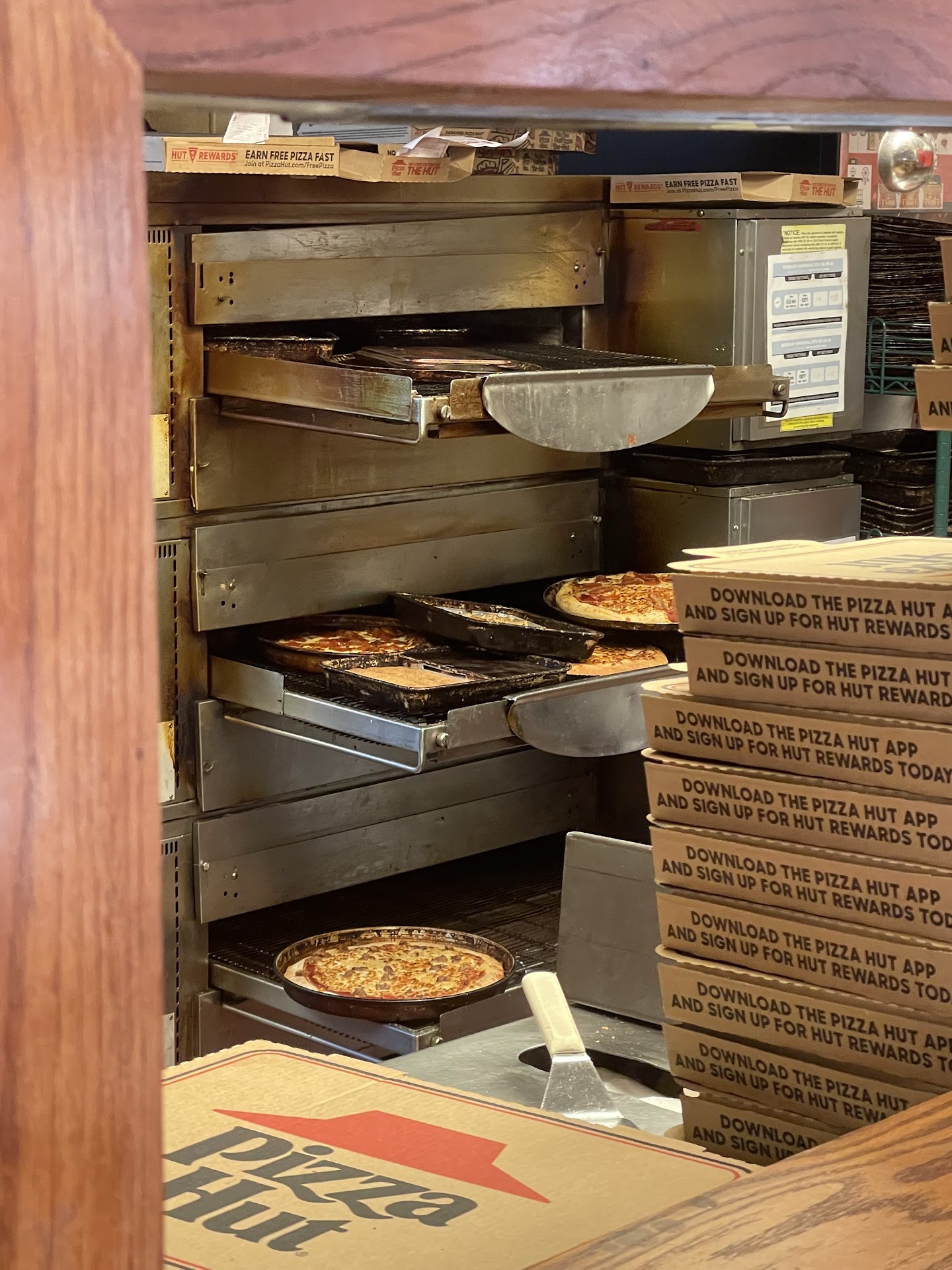 Read moregoogle said they were open until midnight and we got there and it said they close their dining room at 10.. it was about 10:05..we get it .when you're done then it's time to leave. so they had carryout available until midnight so we decided to take something home, since it was getting late. well we haven't been to a pizza hut in almost a decade at least..and we eat out a lot (since we're also in the restaurant business, long hours) they now have the menu on a big board. I asked her for an actual menu to look at because there is no description of ANY of the pizzas so for EACH thing we looked at we had to ask what was on it, to see if it was anything that we wanted. we asked about the super supreme and after being told what was on it we were interested but can't eat the black olives or green peppers so we asked if we could take off those items and substitute them with banana peppers instead. still a pepper, but not one that'll make my husband sick. she said she could take the two items off but it will cost us an EXTRA $3.50!! we saved them the cost of two items for the whole pizza but they wanted to nickel and dime us for our stuff! we chose the buffalo chicken pizza instead, some bread sticks and boneless wings. all I can say is the bread sticks are still good! the boneless were so hard we couldn't eat them..and the pizza was not at all what we had thought. EVERYTHING there has become outrageously expensive đ but live up to those higher prices with excellent service or food! we were extremely disappointed and probably won't go back for another decade!! đ thanks for nothing pizza hut, there are enough other restaurants to go to and try out...it...