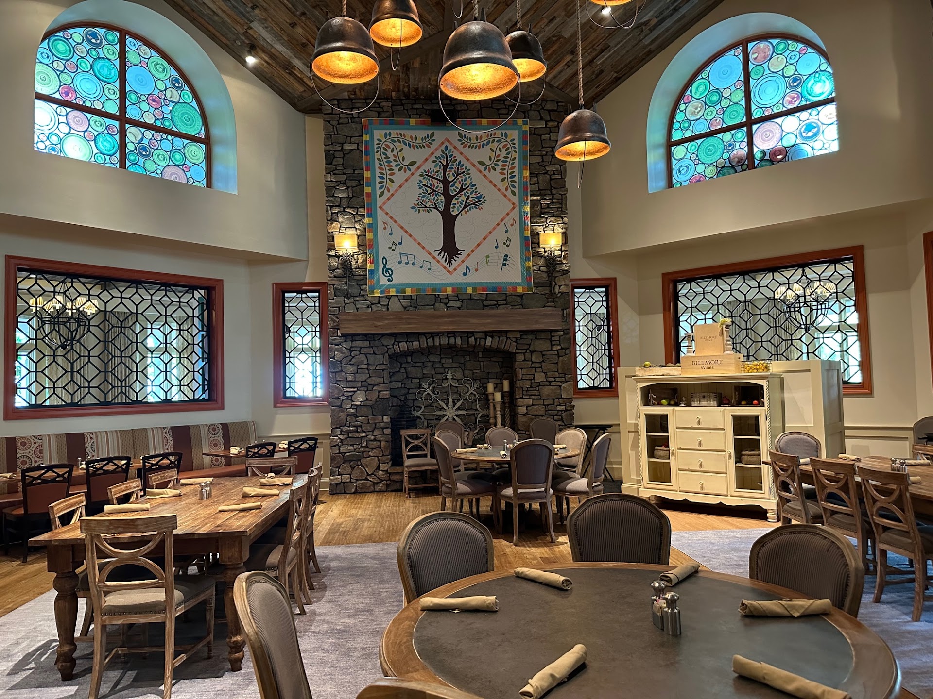 We arrived late afternoon for resort check-in and weren’t up to leaving again for dinner. 3 adults, 2 teens. It seems Song & Hearth recently switched from buffet to family style? And reviews were all over the place. Rather than do the grab-n-go market, we decided to take a chance as Family Style dining is a fun treat. We placed reservations via Open Table, though it didn’t seem other parties were delayed being seated this Memorial Day weekend. This is a family resort and understandably there were a lot of little littles. The hostess was professional and also accommodated our request for a particular area of the restaurant as it was my brother’s 50th bday. Our server, Karen, was friendly and kept things moving with assistance of dining room support staff. Not rushed, relaxing enough to enjoy the ambiance, and not too slow even though a party of 20 was seated just before us. We had chicken, brisket, and salmon. Broccoli casserole, mac n cheese, & mashed potatoes. The salmon was excellent! Not at all fishy and great flavor. My son, who lives on chicken tenders, loved the wings. Chocolate Mousse & Banana Pudding a great ending. Could grandma make some of the sides “better”? Sure…we all have our preferences. But nothing was horrible. Tea was sweet. Biscuits were hot. Song & Hearth was a great way to immerse into the resorts vibe and begin our time at Dollywood.