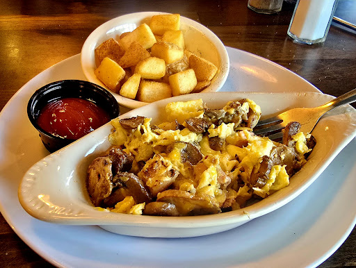 The appetizers were good. Corn fritters and monkey bread. The entrees took maybe 30/45 minutes or more to come out, and 10/15 mins longer for my wife's, as they miscooked her order. So we had some anxious kids waiting for a long time for food. Not great for a family. My chicken tenders had soggy breading. They may have microwaved it. My wife's "ol smokey" was smaller than a breakfast burrito for $18. The home fries on the side were soggy, and clearly microwaved. She didn't have time to finish, as our kids patience had ran out after an hour and a half. She had to ask for a box as soon as they brought it out.