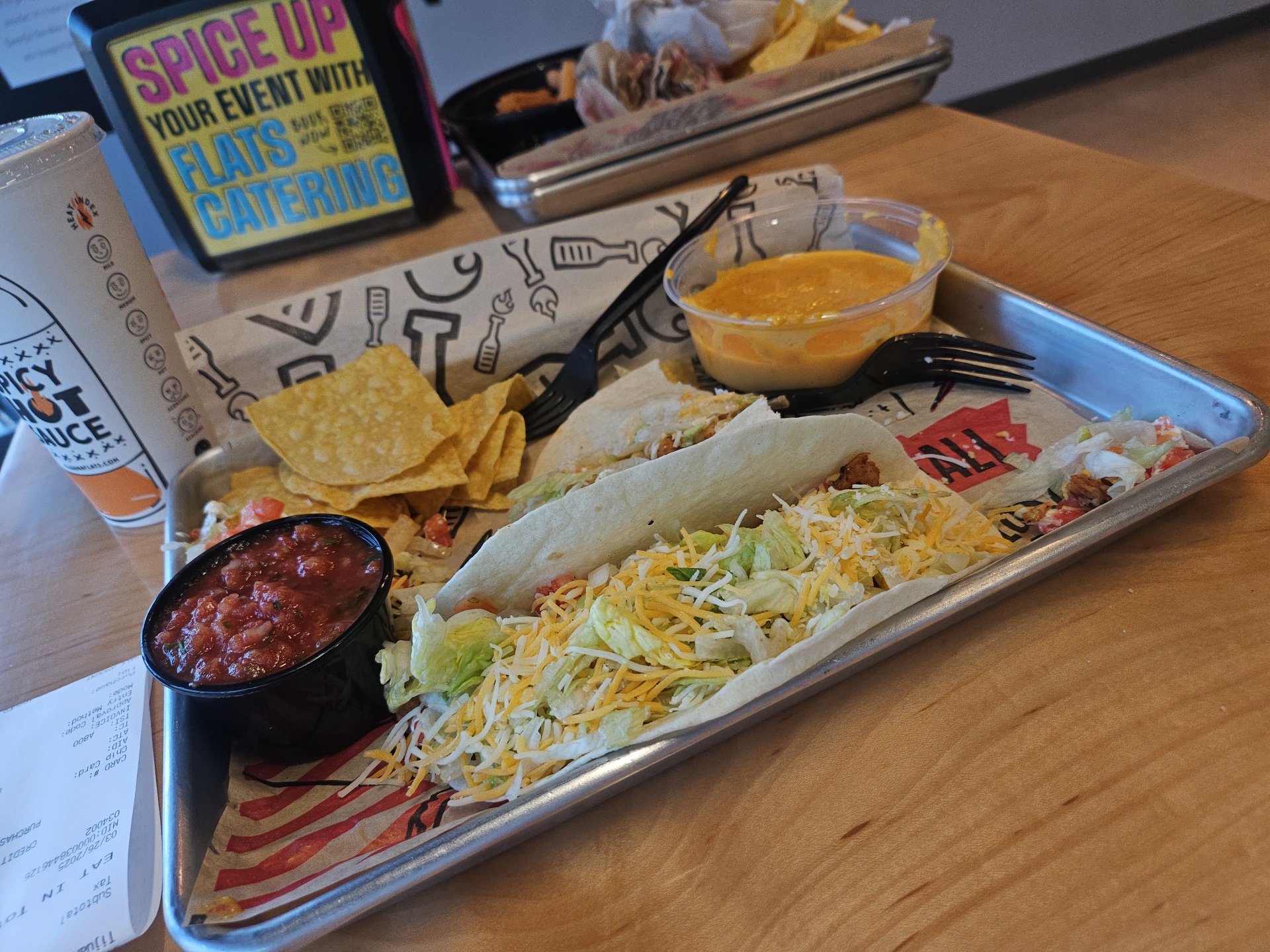 Read moreSo folks, here we go again. This time we were headed to Sevierville, Tennessee. We were looking for a place that we could have lunch that we’ve have not been to. We used our GPS and we found the place that we recognized a Tex-Mex that we used to visit in Florida when we live down there Now. If I remember correctly, the story was two college kids started Tijuana Flats Tex-Mex restaurant. They went to the university of Central Florida. This business exploded line out the door every single night. They had a great location right down the street from the college in a strip mall. We were turned on to this place by a couple of neighbors so when we were looking for something different and we ran across this place on the GPS. We were like no way so we went so if you folks like just good Tex-Mex tacos and Tex-Mex simple food and a cold beer this is the place to go. There’s an item on the menu called dos tacos on this particular day. They were the special to tacos, nacho chips, and your choice of queso or salsa and you always get warm lightly salted nachos in salsa. That’s what we usually get when we go. Sometimes we add beans or other items rice but these guys did so well that they started offering franchises and that took off in there everywhere a lot of the locations in Florida had a lot of sports celebrities, musicians, and a lot of famous people going in and out. We enjoy the food every time. We haven’t had anything bad yet from Tijuana Flats. Give it a try and see...