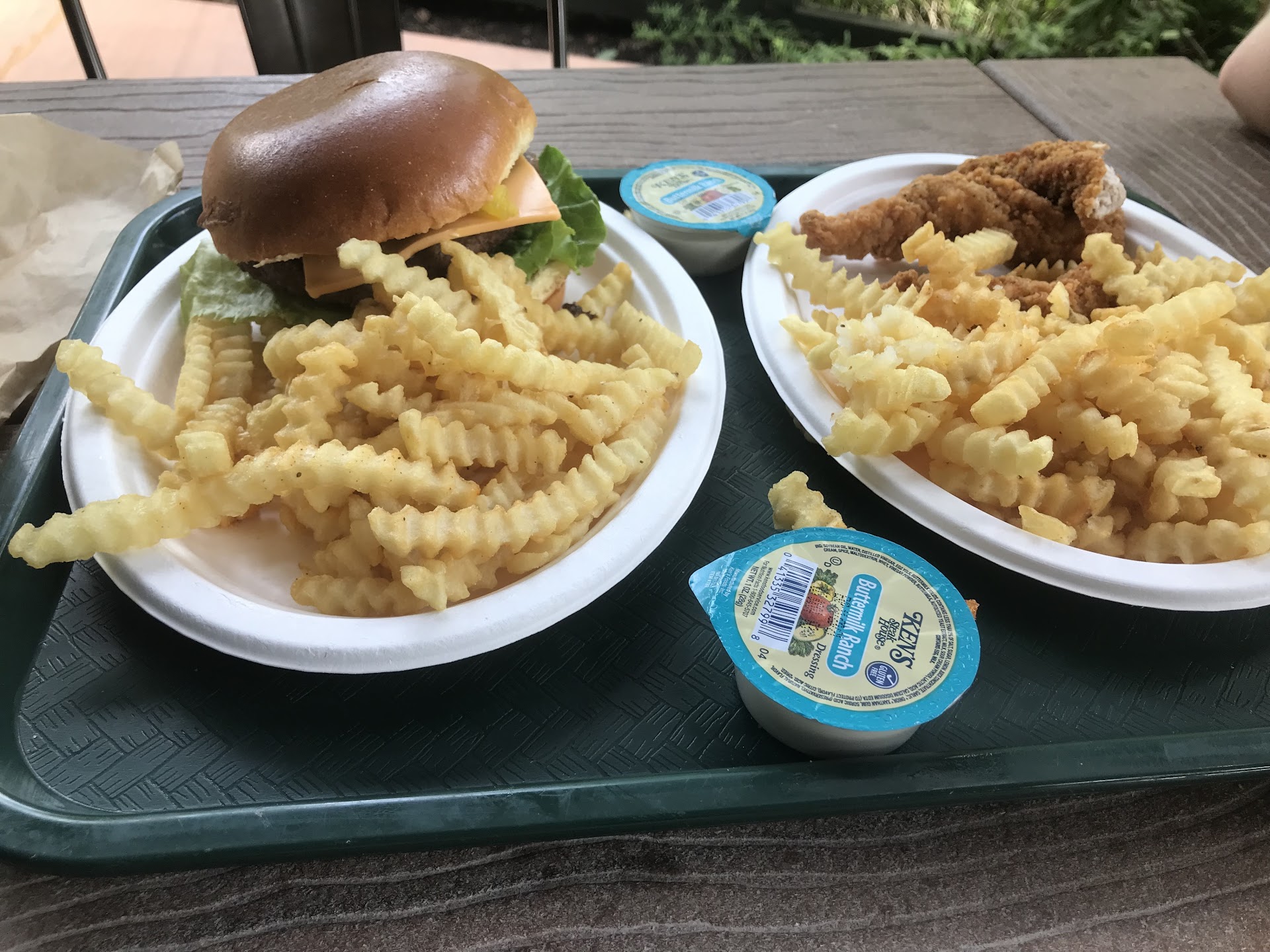 Read moreIam not over exaggerating when I say the food is overpriced cafeteria food, the food was okay the 1st time we came here it was meh something we stopped through because it was hot and the kids were hungry second time was no better but worse, on top of that our first visit I assumed the bad customer service and dirty tables and restraunt was from how busy they were that day. When we came back to dollywood we found our self back here due to convenience but they weren't even busy the customer service was still bad and the restraunt was dirtier than the last time, tables were dirty nothing was stocked at the drunk station and menu was limited on options spend 40 dollars on a rubber hamburger with fries and 3 piece chicken strip...