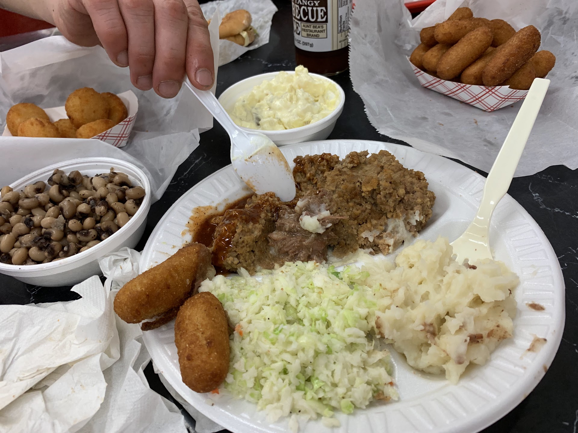 I came around 3:30 pm. I had been driving for hours and needed a break. Plus I was hungry. Not being familiar with the place I asked the young girl behind the counter what they had to offer besides BBQ, she pointed me to the Marque and recommended a cheese burger. I decided sense it was a BBQ place to go for a large BBQ sandwich and fries and a peach cobbler for dessert. I sat at a table and waited for my number to be called. It didn't take long at all so no complaints there but the food just really wasn't up to par.