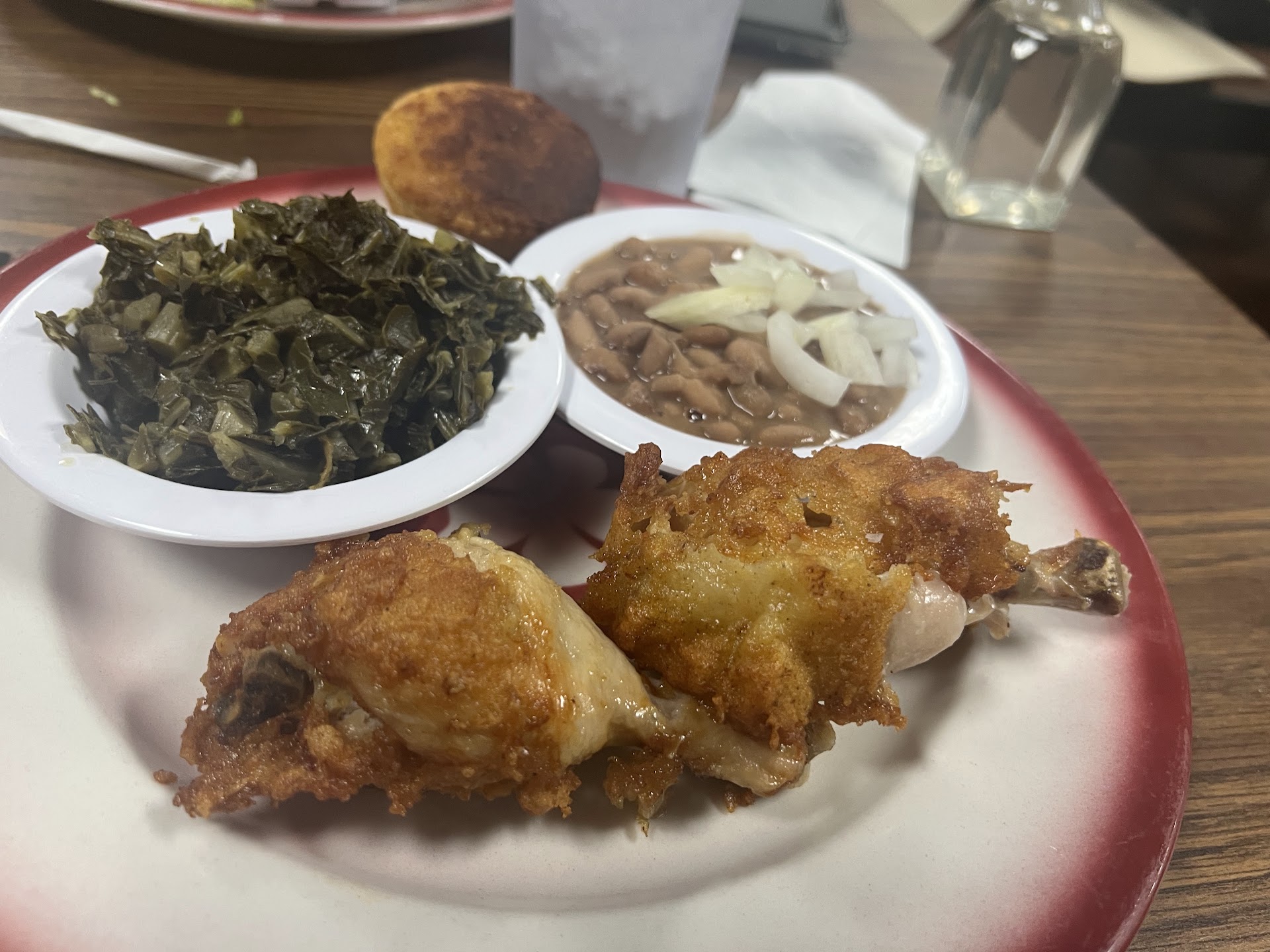 Our waitress was pleasant enough. We had fried chicken (was hot), fried squash (room temperature), macaroni (was ok, not truly warm but not quiet room temp), and the mashed potatoes were cold (after letting the waitress know, she took it upon herself--to take the dish of mashed potatoes to the back and put them in the microwave. First off that is a HUGE NO-NO. Even when they were brought back out, the dish was slightly warm but not the potatoes.) Half way through the meal still missing the biscuits we were told sorry we're out and brought rolls (mind you Half way through meal) and No refill on tea (never even an offer for more). Don't think we'll be back. I can not in good conscience recommend. Maybe it was newly staffed or something. Ps...Gordon Ramsey would've ripped this place a new one for taking food from the table back into the kitchen without it going straight into the trash. I've worked in the restaurant industry in the past, I knew this was a no-no and was in awe at seeing they were the same potatoes removed from the table. Needless to say the bowl of mashed potatoes was left uneaten. If you do try Cousin Gary's I hope you have a much better experience. Maybe this review will shed light on some issues that should & need to...