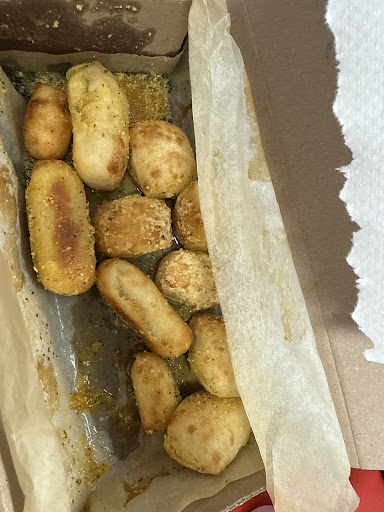Read moreHave order pizza 4x since it opened. Really happy they are in town and the first three orders were exactly what we ordered. Our last order was more of an issue. This is what the box looked like. All the grease seeped through to the bottom and onto my pants. It was overly greasy this time. The cheesy bread was dripping. Not sure why because I ordered the same items. Also make sure there is wax paper on the bottom of the box, this could have prevented the grease stains...