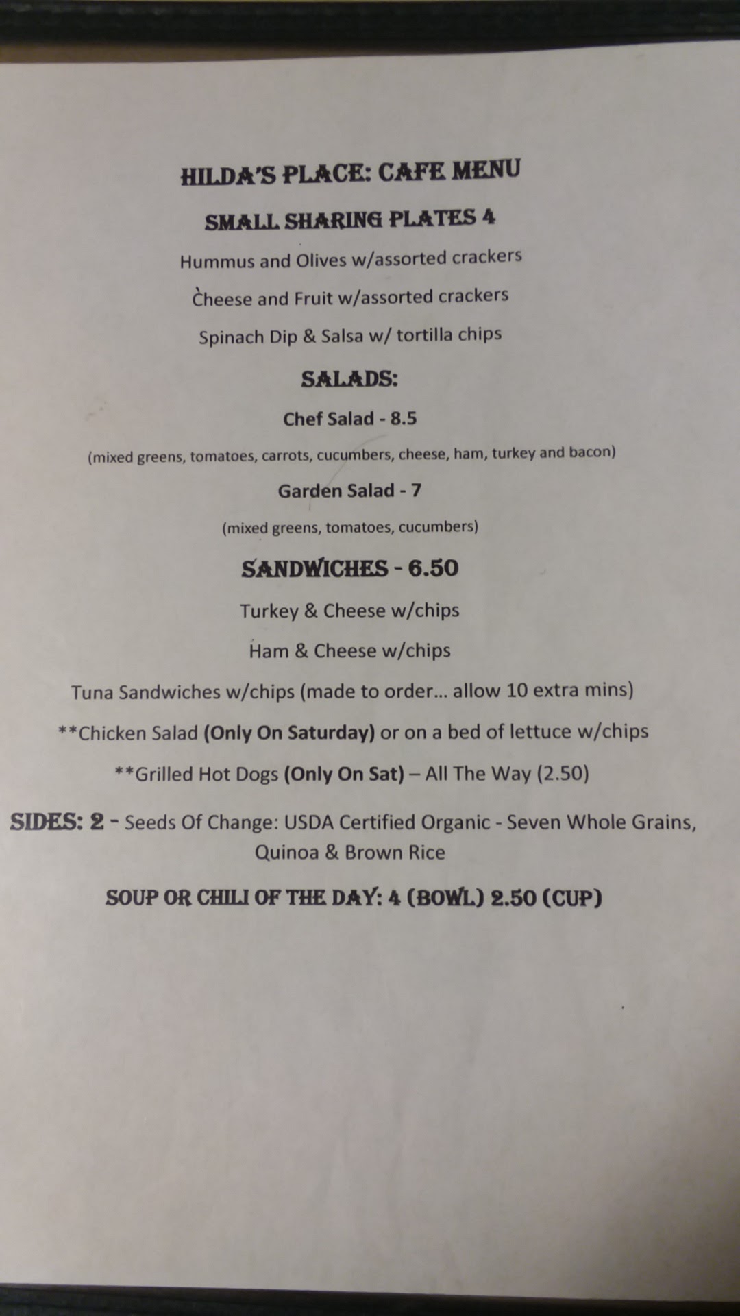The atmosphere at Hilda's place was very relaxing it's as if you are sitting in your own living room very comfortable chairs the food especially the chicken salad is very good the band that performed that night was excellent they played some very good music there was dancing relaxing enjoying the company of others would recommend this place for couples on date nights just to relax have a glass of wine or coffee I would recommend this place to those who are looking for a relaxing night out with your husband or wife Hilda is a great person the...
