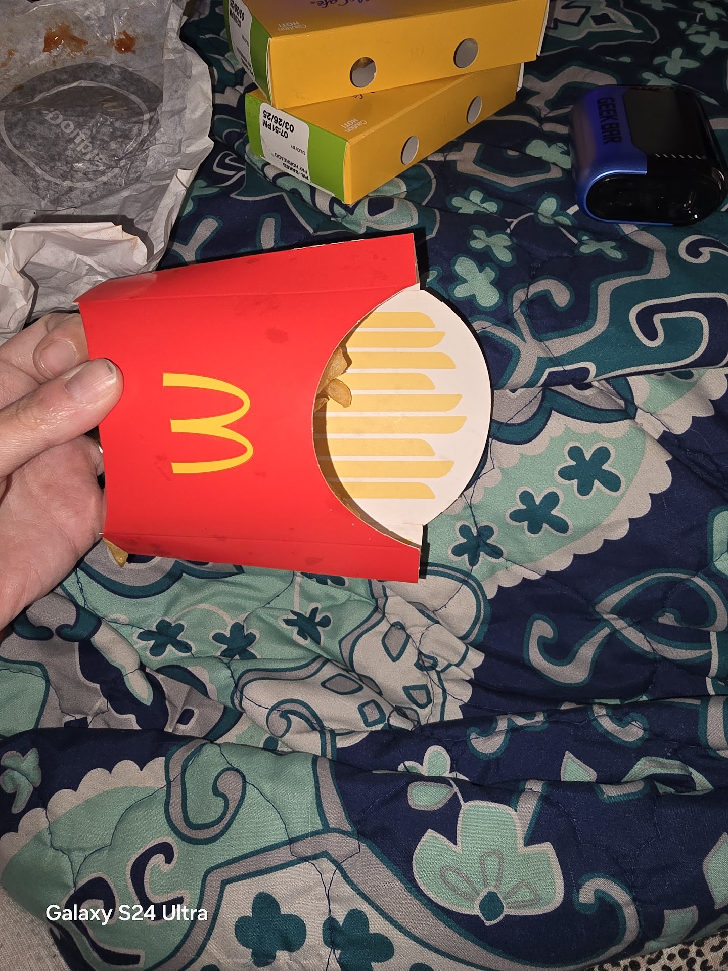 We ordered a meal deal, the 20pc nuggets, 2 Medium fries and 2 medium drinks, but what what we really got was both fries could have fit in a small bag and we're burnt and just looks nasty. The burger I ordered separately was put together sloppily, a 2 yr old likely could have done better. Pictures to follow. People are paying to eat this food, having previously worked in restaurants I wouldn't dare serve this. It's pure laziness.