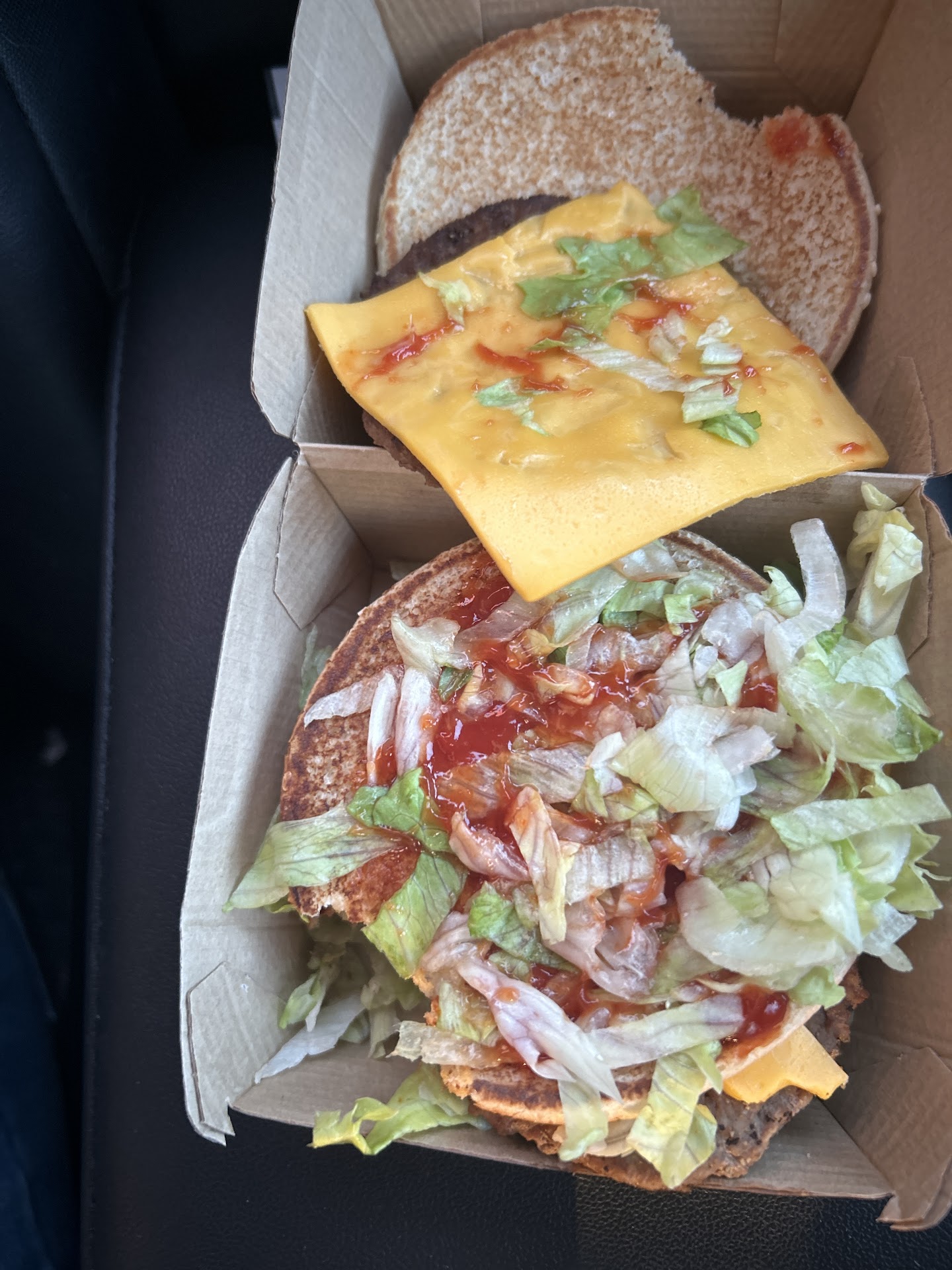 Read moreVisited this location today using the screens to place our order and registered a table top number of 21. We ordered 2 double cheese burgers with extra pickles, 1 large frie and 2 large drinks. As instructed by the receipt and screen we took our number and went and sat down. 10 min went by and we waited. It was not that busy inside as workers were cleaning dancing and seem to enjoy their work location as they chatted with each other. About another few min go by and one of the workers yell out an order which matches ours. My husband goes to get the order, when another young gentleman steps up takes the bag of food and drinks. We wait a little longer and I head up to the counter. As I walk to the counter the young gentleman who took the order from the counter returns the bag of food and picks up another order and leaves. Obviously he took the wrong order. I then had to wait for one of the dancing conversating employees to see me standing there in order to get two large cups. As I went back to the table my husband states to anyone one listening, mainly Sherry, we assume the manager sitting on her laptop in the back corner of the restaurant, what is the point of providing instructions if you are not going to use or follow them.