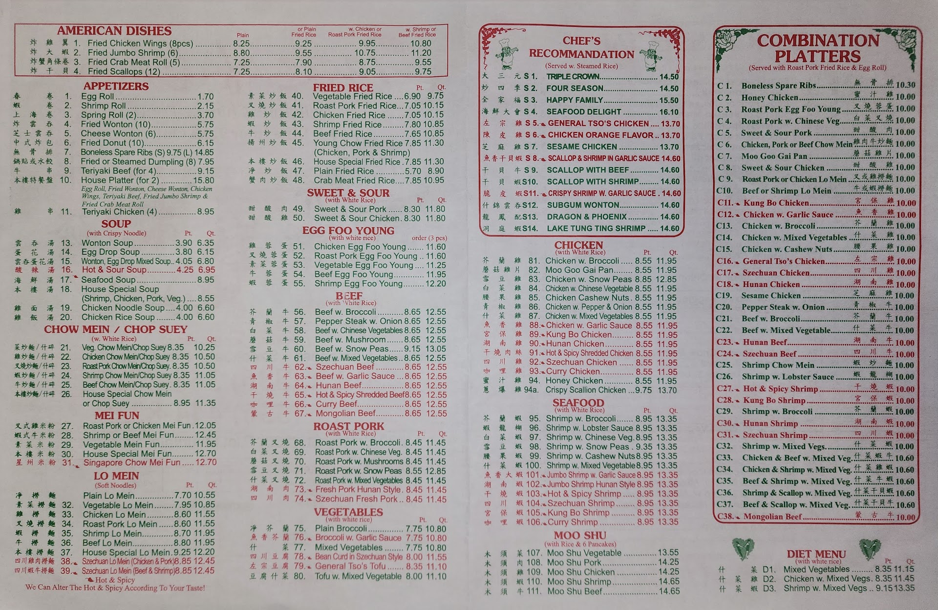 The best Chinese take out /dine in In the area. Its a small family run operation with a pretty standard New York shotgun layout where you can see straight through to the back door and watch how the cook prepares your food. When not in school the two children take the orders and clean the dine in tables. They also handle some of the cash transactions. They have something there that I have not seen at any other Eastern food establishment. A scale model of a section of the Great Wall of China. Very detailed and unique. I give them 5 Stars not only for their great food and warm hospitality but because they work so well together as a "Happy Family"and a true testament that if any person works hard and diligent and has a genuine love and passion for any field of business they want to entrepreneur in life that the American Dream is still achievable in small...