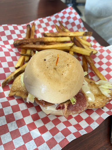 Read moreI'm a first time customer today, I ordered their Frickle Burger with French Fries on the side which cost $12 plus tax which the subtotal $15.41 I think, and it is the first I've tried, and omg it's a pretty big Burger 🍔. Topped with bacon, some kind of white sauce, pickles, some kind of fried chips, and onions, It's packed with a punch and it kicks major butt! What a burst of flavor! I loved it! Also their French Fries, Seasoned In Total Perfection 😍. First favorite as of now. My mom and I will definitely be back again soon when I get some more cash. I'm very excited. Can't wait. Gave 5 stars Very well deserved. Oh and the staff are so lovely and...