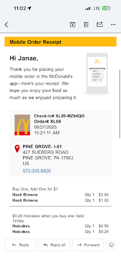 Well you walk in and see the self ordering stations n have no idea if you must order there or can use one of the two registers no one was standing by if entering the first time. You do have a choice I found out after a man walked in and went to counter and saw me waiting behya guy and looking confused and said you can order here too n he was ready to order n a employee did after about 5 mins walk to register. Some very stupid things I discovered and a bit deceiving. They no longer have hamburgers per saw, you must order a cheeseburger w no cheese so if you don't get the dollar menu cheeseburger w no cheese your paying extra I gather if order a hamburger now but not sure. Then a medium chocolate shake is exactly the same size as a small soda, a bit deceiving n I thought they gave me wrong size, I took a pic of the small coke n med shake, but your paying like $3.60 for a medium shake which is a rip off in my opinion. The food was at least hot, french fries fresh and staff was very nice. The tables in the dining room however don't have someone coming out n wiping off table. The table behind us on each side was dirty for the 45-60 mins my client and I sat in there. The bathroom was fairly clean but the one to let didn't want to flush and had to flush it 3 xs. It is nice looking inside but they need a sign for new people saying can order at counter or self service menu. You pay with a credit card or bank card are self service I noticed. It's fairly busy but a lot more cars in lot then ppl eating inside right by the door so most of the vehicles had to be employees. The fact I stood behind a guy at self service n no one at the cash registers says staff a bit lazy if they can see ppl standing 5+ mins and no one says you may pay here because why would anyone want to stand behind someone when the register is no line. It took both ppl at the self service machine awhile to order n pay because I actually was up at counter n paid before the man or woman at the self service machine walked up for food order. They give you a number for your order and bring it to your table. I told the guy at register that the family buys my client food off $1 menu so I got him a cheeseburger w no cheese, a supposed small fry n sm soda, he asked me if like $1.47 was ok for Jason fry n I said yes, I got a shake n sm fry however when food brought to table he got a medium fry And mine later brought n I got a small so not sure why they ordered Jason a medium when I was very specific and they got mine right. I think you best watch orders because I think they will try to over charge you if they can by a more expensive item, otherwise why give me one medium fry n one small when I ordered his and then mine n said sm for both. Thw prices here are cheaper than Elizabethville store. It's very easy to get to from route 81 and overall if a traveler if you want mc Donald's I'd say stop here vs ones by Harrisburg where food was cold and poorly made when I stopped at the one south...