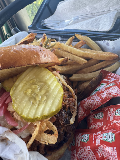 My friend was not impressed with his burger and his fries either. The minute he looked at it he said he wasnāt coming back. His fries looked like they poured the end off the bag. He had a bunch of burnt little peaces of French fries. He had to eat his burger carefully so his didnāt fall apart like mine.