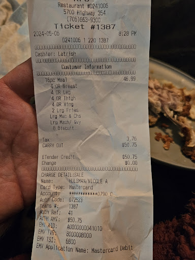 Ā Ā Ā Read moreMe and my mom went to the kfc and ordered 2 chicken sandwiches combos meals for my dad and I then we go home to eat them We saw that there frozen me and my dad go there to get a refund when they say that they cooked it fresh when it was clear that it was frozen we ask for a refund they say we have to have a receipt to get a refund so we show a picture of the receipt and they say they need a physical copy we drive all the way home get the receipt go back in recording was soon as the manager see that we were recording she completely changes her attitude and changes form being unhappy and angry to kind and joyful and then they ignore us for 5+ minutes then we finally get the refund we go home and then cops come and said that the kfc people called and said that we said the n word which we did not and had proof because we had been recording the whole time.