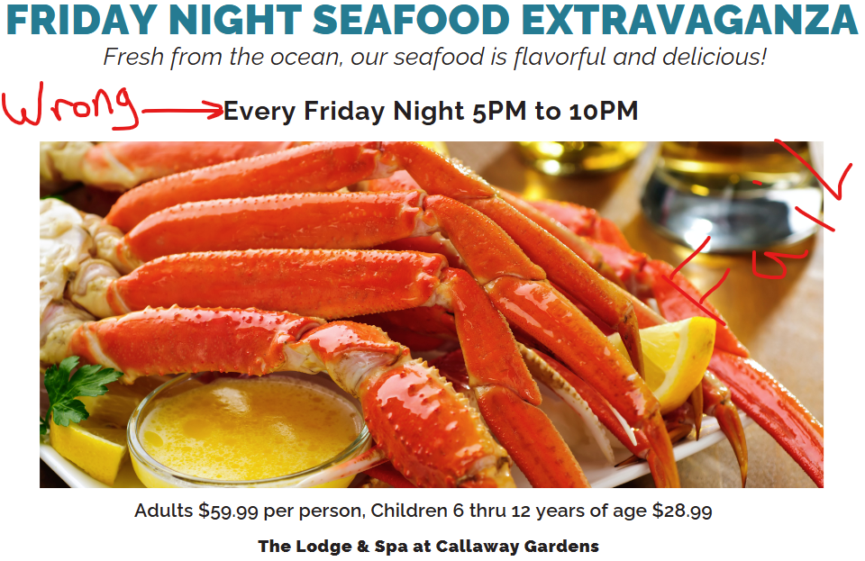 Coming from someone who has been coming to the buffets for 3 years - our experience was terrible on Friday! Wether it was ownership or management that decided to change things I wanted to tell you that was by far the worst decision for this place ! The buffets used to be top notch. From the Friday night seafood, to Saturday prime rib to any of the holiday buffets ....didn't matter what buffet you wert to they were all excellent! Can't say the same for how the buffet is now. The layout of the buffet has changed ! Where the salad bar was , is now where hot food is kept ..... the hot food selection is slim to nothing and now they are keeping the cold food out on the counter getting room temperature (even the dressings, pasta salad and potato salad) was all warm/room temp ! Gross ! Why don't you use the cold bar to keep the cold food cold? The new display is messy and doesn't make sense. Many of what's on the menu for the buffet was not there. Why advertise steamed mussels and clams if your not going to have them? The food selection on seafood night was slim pickings. What's the point of calling it a buffet?? Our service used to be awesome ....now it sucks ! Our server was rude and it was too much of a inconvenience to ask for a drink in a Togo cup because my cup had food and sauce smeared all over the cup that was supposed to be "clean" ......then when he brought me back a to go cup there was a BUG floating in my drink. When bringing this to the managers attention all he did was not charge me for My dinner. He did not care that there was a bug in my drink. As a manager of a "resort" thats un acceptable in my opinion. The tables were dirty, the plates were dirty, the silver ware was dirty. I had to sit and shuffle through plates before I could find a clean one ! It was just gross to me ! I am beyond shocked of this because again we come to Callaway alot to eat dinner and come here for the holidays. I will never be able to live past the bug in my drink so sadly we will not be back. I hope the owner reads my review and takes my comments and advice into consideration. We used to come here on Fridays and the buffet was slammed with people . Now , the place has emptied out for dinner. This place had it right, and then got some new idiot in to run the show and is running it into the ground. I hate that we don't want to ever come back. I always looked forward to coming here for a nice dinner with my...