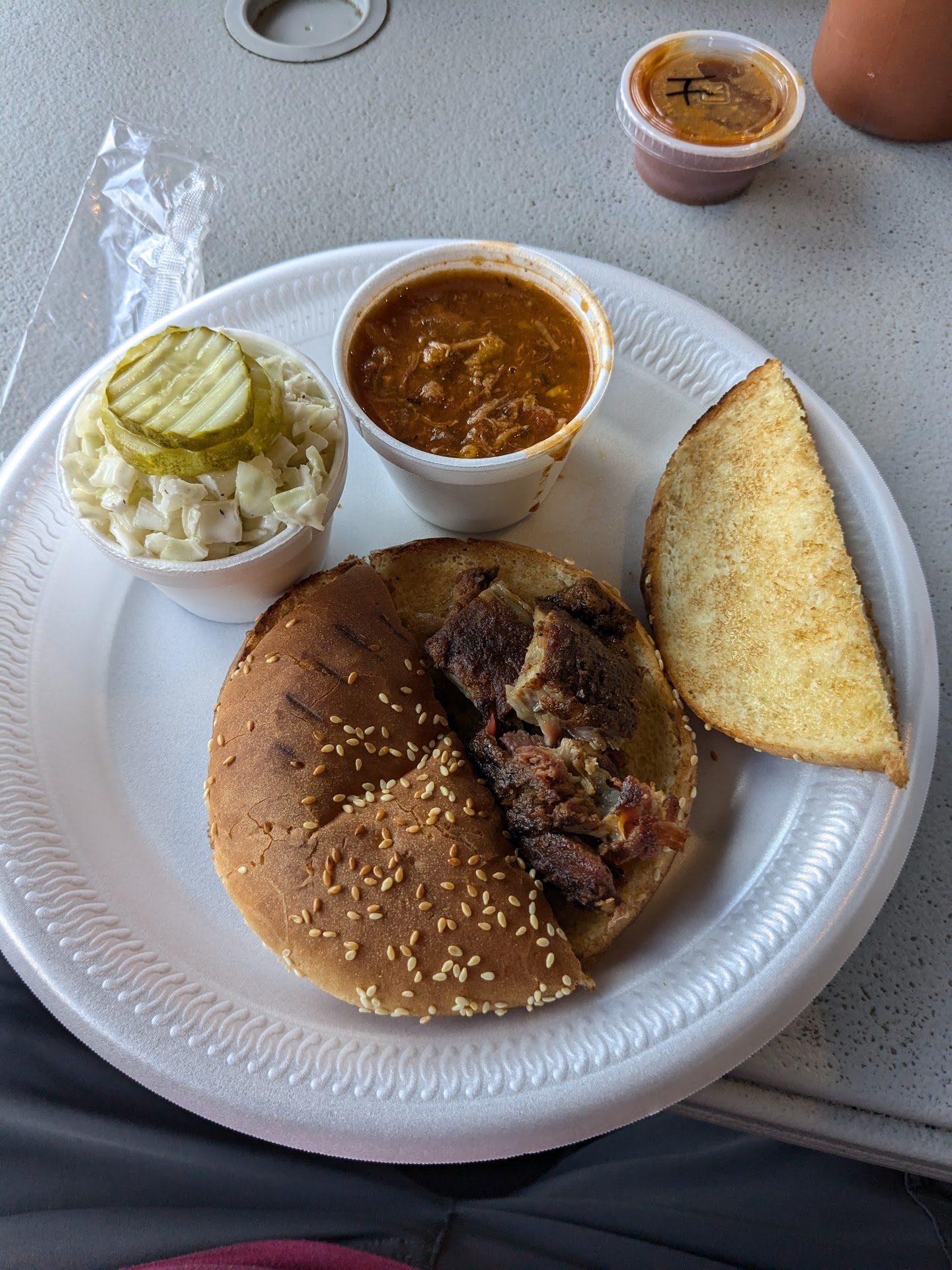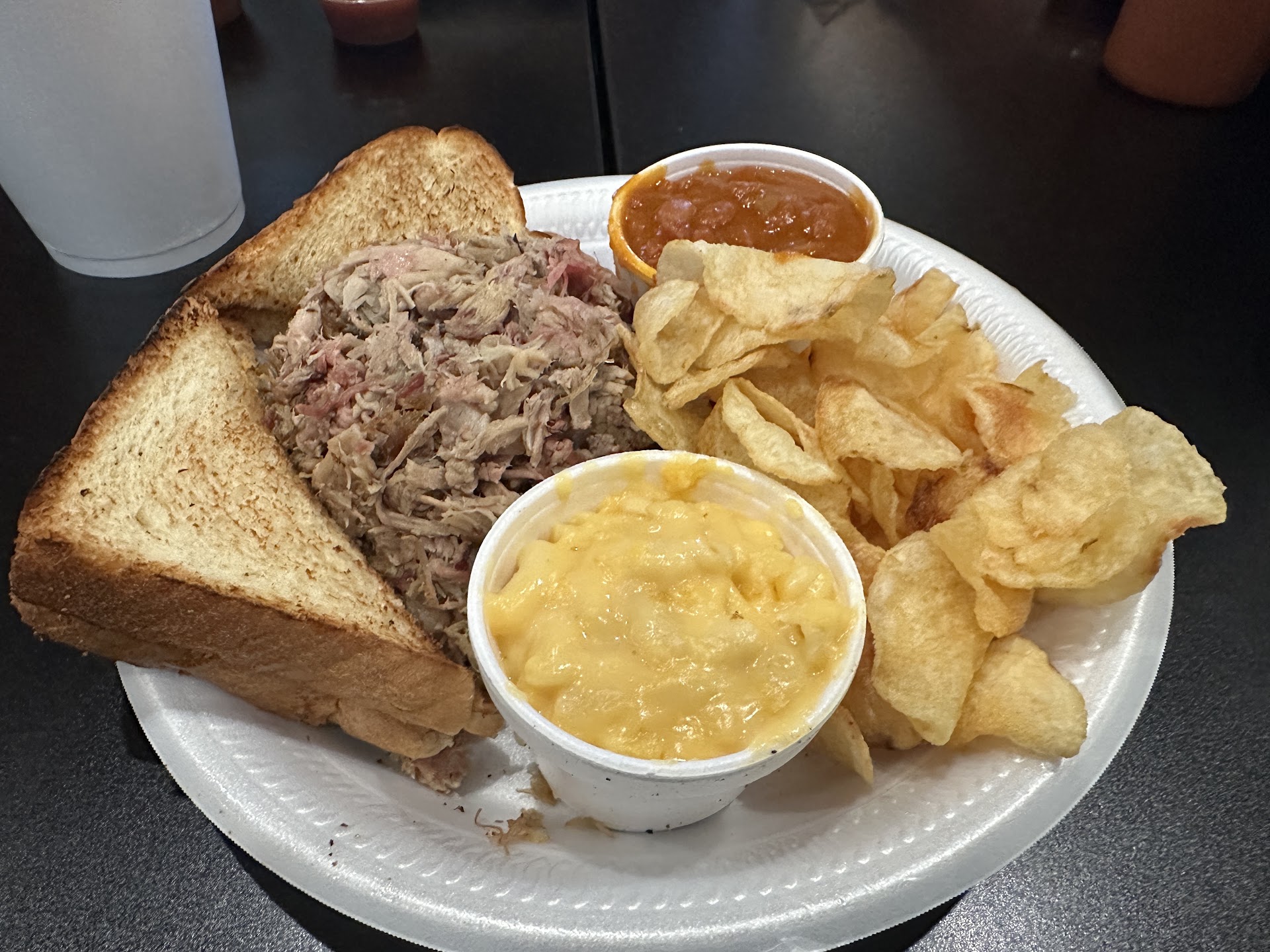 BEST EVER I'm 67 and from New Orleans and let me tell you I just stopped in for a quick burger and got the surprise of my life from this unassuming BBQ restaurant!!! I ordered a cheeseburger, potato salad, and coleslaw. Each item was the very best I've EVER had. I started out with the potato salad and was treated to the creamiest most tasteful Potato salad I have ever had. Thinking this was a one off next I took a fork of Coleslaw...Coleslaw is tricky if done properly and this slaw was everything you'd want in a slaw, FRESH, creamy, crunchy and seasoned to perfection. I looked down on what appeared to be a medium sized burger only to pick it up after putting mayo on both buns and feeling the heft of a SOLID mass of burger with just the right amount of addons. The red onion, cheese, and tomato on one side of the juicy burger and lettuce and tasty, snappy pickles on the other held up PERFECTLY until the very last bite! The bun was one of the heroes and NEVER got soggy with this perfectly juicy and tasty heavy slab of meat! I cannot imagine how much work they have put into craft such a perfect dish to where a 67-year-OLD man is Stupefied!! HOW??? Did I get punked??? Was this an episode of Best Chef??? If you find yourself anywhere near this town...Pine Mountain...do yourself a favor and stop in!!! THEY MAKE NOTHING that isn't Delicious!!! I keep wanting to try desert but after licking my plate and styro cups I do not seem to...