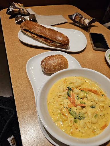Read moreThis is my local Panera. I've come here a number of times since arriving. I've had an interesting experience. In the beginning, it was great. During the height of COVID, it was awful. Now? Well, they're trying. I know everyone is having difficulty in terms of the food service industry. About 6 months ago, this Panera couldn't make a $1 cup of ramen noodles if it tried. The flatbreads were soupy, orders would get screwed up, I would wait 20 minutes in line. But in my last 3 trips or so, the effort has been top notch. For example, an employee messed up my mobile order. When I explained, it was remedied right away, and the culinary director came over to apologize & offered me a free cookie. I can really see that they're trying to make everything work smoothly, so I officially like this place again.
