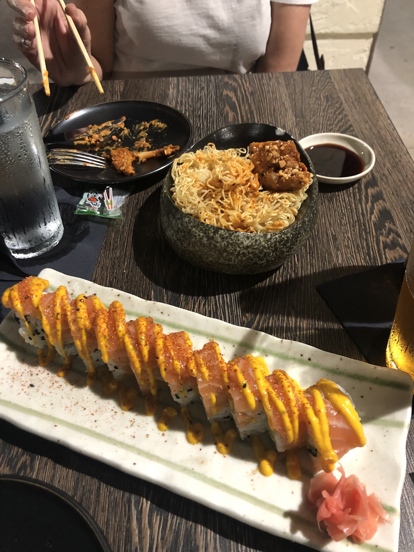 Read moreHad reservations for 7:30pm however we arrived early and requested an inside table which was available but was denied. Then we requested a table next to the business window away from the edge of the walkway next to the parking lot and was also denied saying that the table we wanted was for 4 people. We reluctantly had to sit in a 2 person small table. We ordered the sticky shrimp for appetizer and it was brought out quickly. It was very good however it should bring more than 4 shrimp for the price. We then ordered 2 sushi rolls one came out quickly and was very good with 10 pieces in the roll. The second roll took forever to come out and no one came by our table to tell us what the delay was. After my wife complained about the wait it’s when we were told that the sushi bar had fallen behind on orders. Finally the roll came out and it was also very good and tasty with 10 pieces in the roll. Most rolls are $16 to 18 dollars which is a bit pricey but being that inflation has raised prices on everything it’s expected. We were given a very small dessert on the house for our wait and ended the evening. The total with tip was $72 dollars and we were still hungry. Most of their entrees are very expensive and the portions are small. The service poor except for Gabriel who was very nice and attentive after we complained. They are in the process of expanding the restaurant so half of the place is not being used. Due to the pricey food and small portions along with the poor service we will not be going back. Hopefully they hire more help so they can solve the service issues. BTW the table we requested and was denied was not used during our...