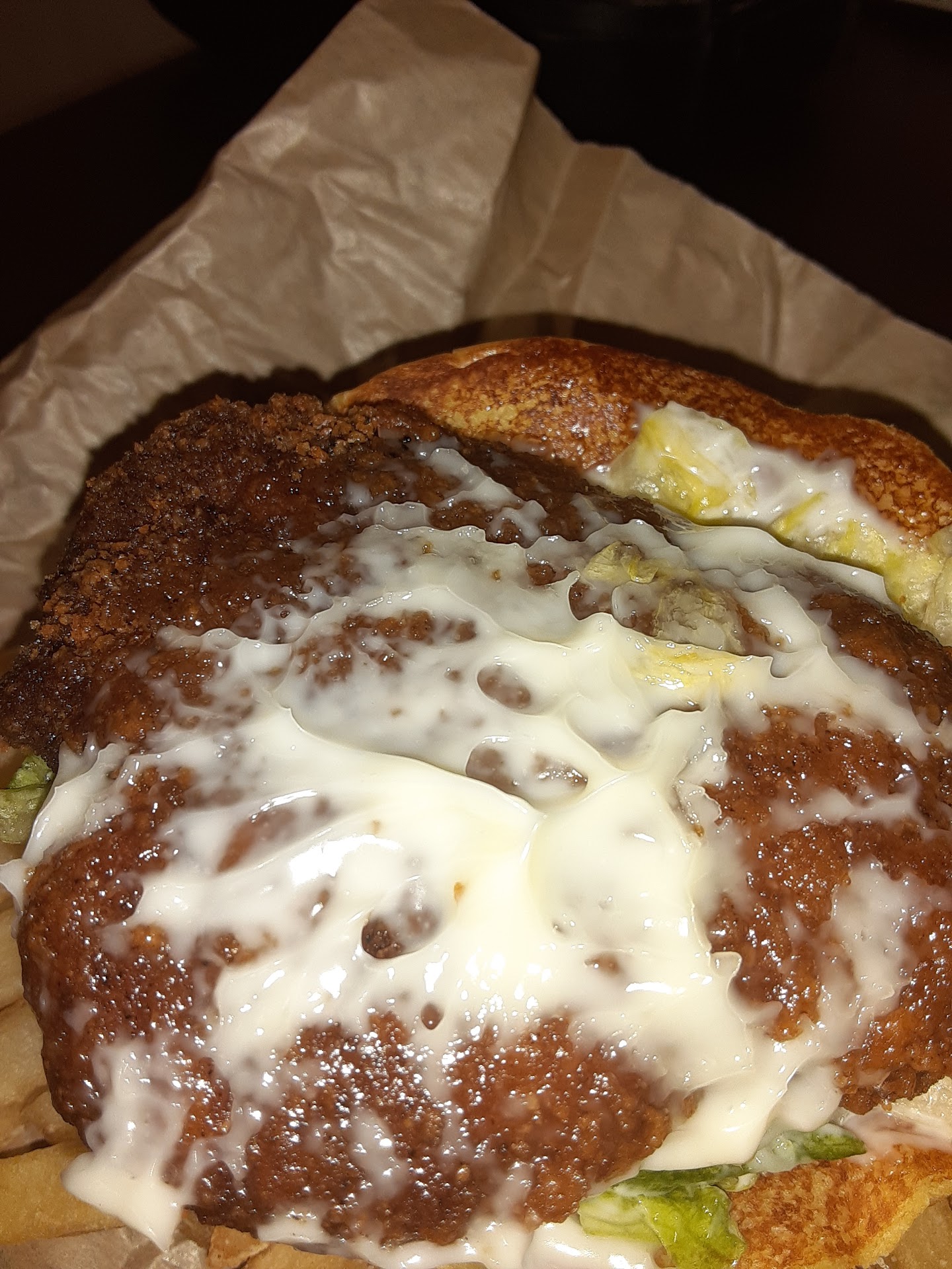 SO. issues. Ordered a double whopper with only pickles, mayo, ketchup. Couse I got one with everything on it instead. And apparently everything means peppers, bacon, and a sesame seed bun. Now the bun I understand, cause I forgot to mention I'm allergic to sesame seeds. So I swapped out the top bun, for one of the tops I had at home. But I'm also allergic to peppers. And bacon gives me stomach aches. Like about to puke type stomach aches. Due to the large fat and grease contents. So I was basically given a inedible slab a meat. Since the peppers were on it. And at the time, I was so tired, that I didn't even care, so I just went to bed after eating the fries. And forgot about it up until now. This happened shortly after they reopened early in the morning, case you are wondering why I just slept and forgot about it till now. But when they usually get the order right, its good. I usually just get two bottom buns, to avoid the sesame seeds. Course when I do, I have to scan the entire burger to make sure none slipped through for whatever reason. I've had better burgers, but still a solid option if you don't have a sesame seed allergy. I had to stop coming here though, cause my sesame seed allergy got worse recently. So I'm not even...