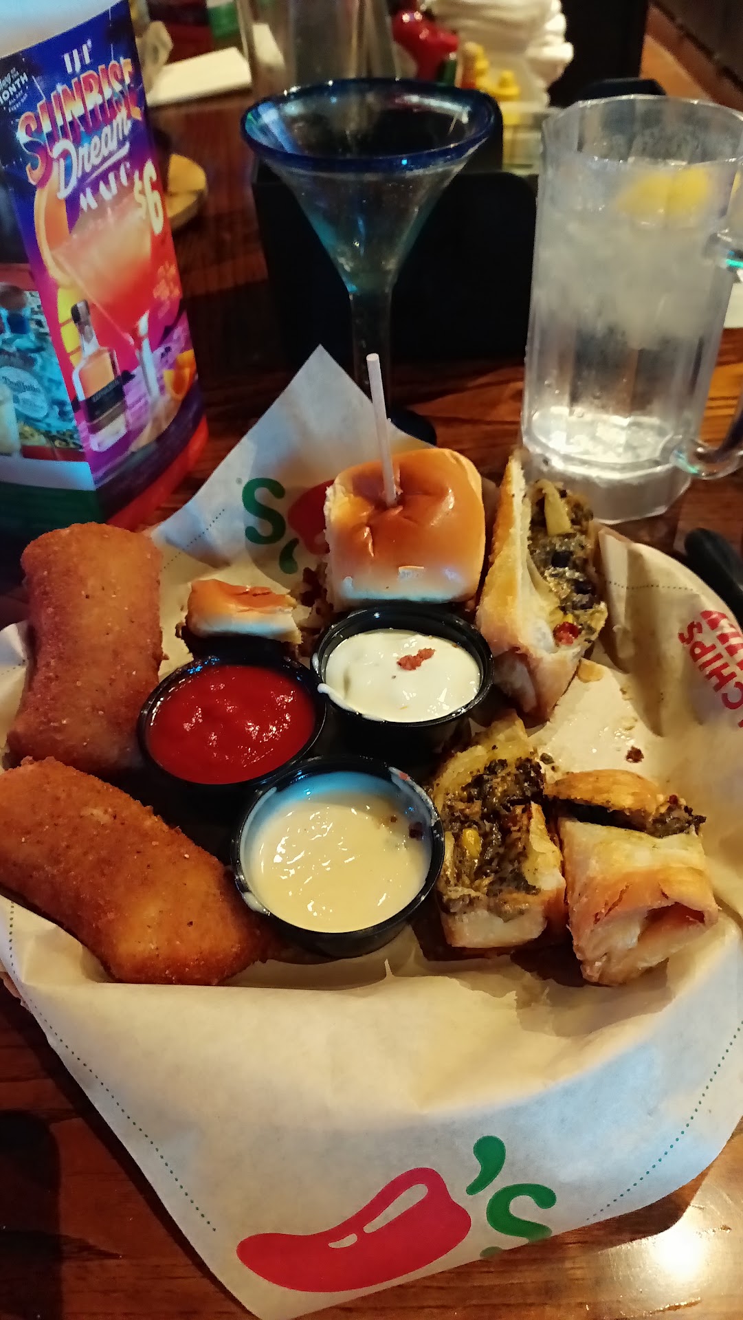 Read moreI went to this Chili's to enjoy a meal with a friend and his gf on 12/30/18 @1630. Upon arrival, I was greeted relatively quickly by the male bartender who grabbed my drink/appetizer order, and alerted me they were changing shifts and I would be greeted by my waitress soon. He came back with my drink within a timely manner and I placed an order for a quesadilla explosion salad. At this point my friends were walking through the door. They sat down and roughly 6-8 minutes later, our waitress arrived and took their drink orders. When she returned with their drinks, my appetizer came with her. My friends ordered a mixed drink and a dinner for two option. We waited nearly 15 minutes before she returned again. She refilled our drinks and told us the food would be out shortly. Five or so minutes later she returned with one pasta entree. My salad had yet to come, their mixed drink, or the chilli he ordered. We waited another 12-15 minutes. When she returned to fill drinks, I politely asked if my salad was near completion. She asked "what salad?". I expressed when I put the order in and she mentioned it might have been lost in in the shift change. She told me she'd ring me up for one but I declined. It had been roughly an hour since I came into the restaurant and I had yet to see my meal. I asked to her to make sure the salad wasn't on my bill and to bring me my check. She returned after few minutes and I paid my $9 bill (before tip), and left. My buddy never received his chilli, and his girlfriend never received her drink. I didn't act upset or cause a scene but silently vowed to never return again. That was probably the worst restaurant service have ever experienced, and I waited tables. I thoroughly understand the problems one encounters. Nonetheless, the waitress/bartender's attitude was care free, and strange. If she wasn't "on something", then I'd be surprised. She was very friendly but acted very strange. When my buddy was trying to grab a to-go box, he said she asked him if the "D" on his beanie was his name; After he informed her it stood for Duke University, she immediately bombarded him with info on school courses she (or someone) was taking before instantly directimg her conversation at another customer, mid sentence.