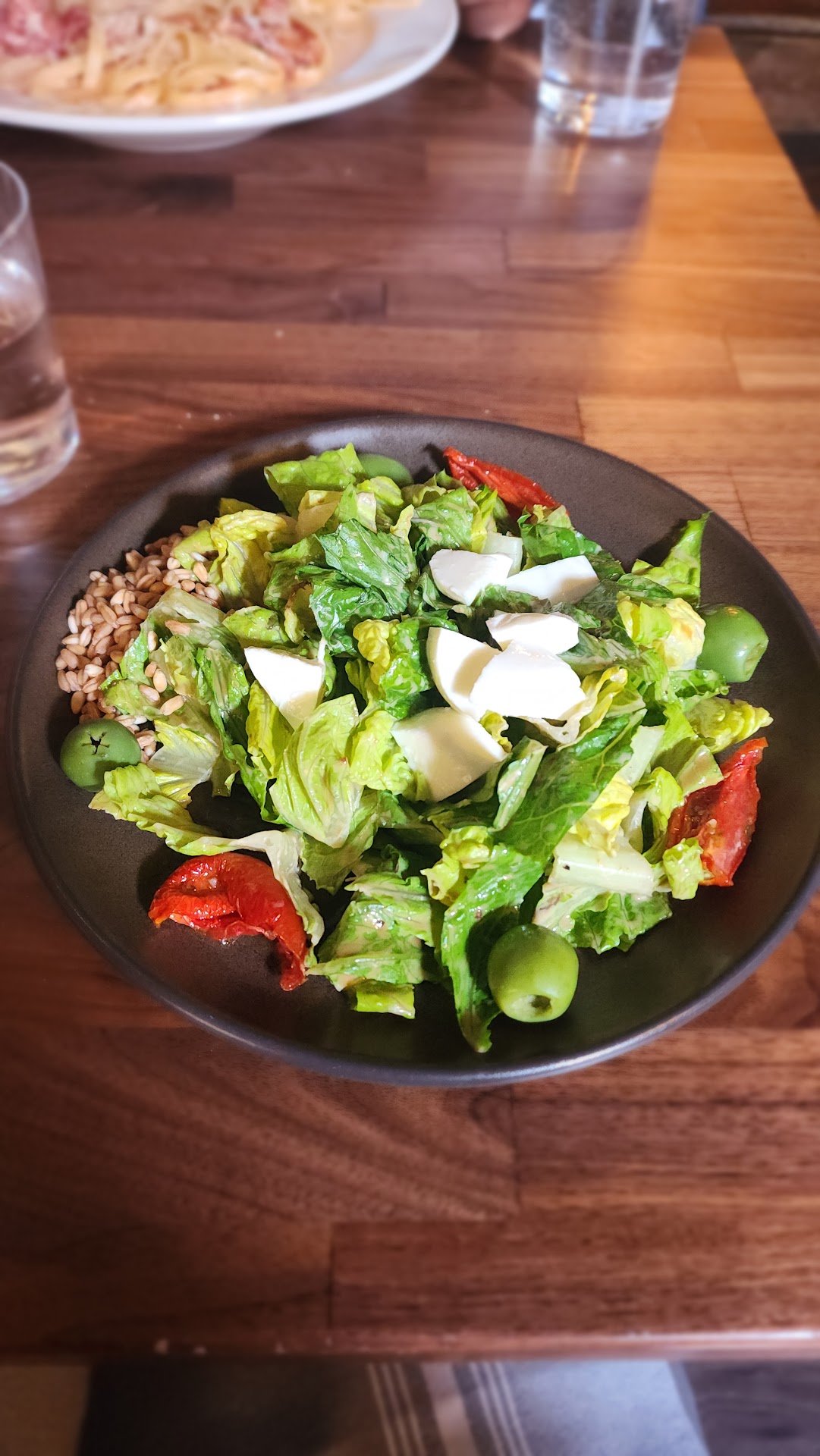 b) Farro Estivo: It had wheat grains and was delicious. I liked it. c) Rigatoni alla vodka: My wife had this and she loved it.