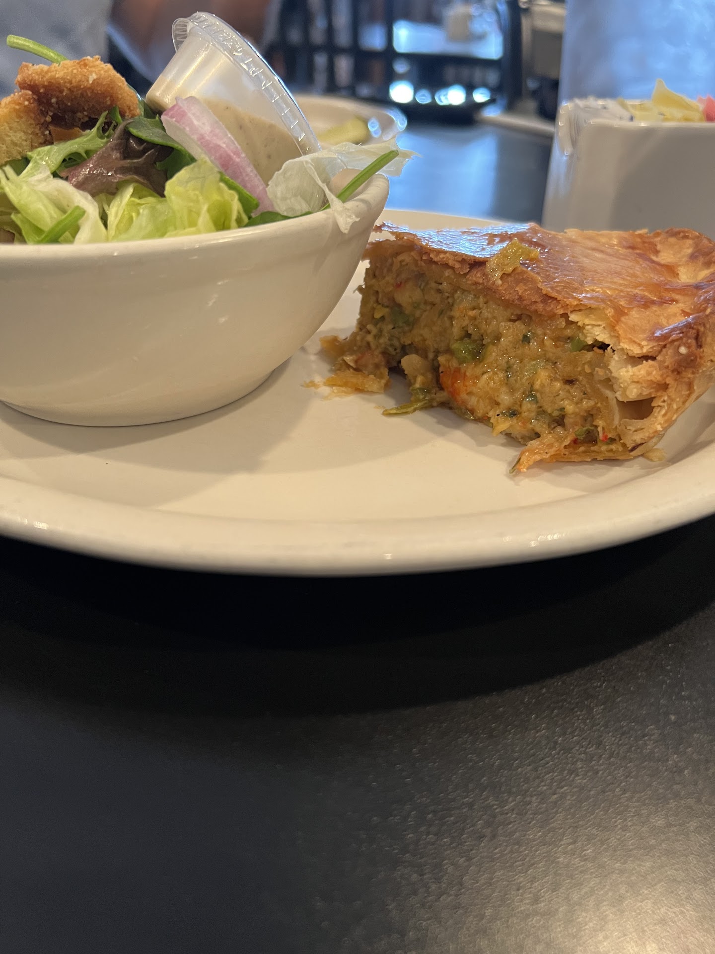 Read moreFirst time visiting Lucy's. The decor is nice, modern meets retro. The menu is simple, which I prefer, as it's much easier to decide among 20 items than 50. We seated ourselves, and a waitress was taking our drink orders within a minute. She returned with our drinks within a couple of minutes, and we were ready to order. I had crawfish pie, and my friend had loaded crepes. Both are served with a side salad.It took no more than 10 minutes to have our food, and it was delicious! The crust of my crawfish pie was flaky and perfectly cooked, and the crawfish filling was outstanding. I tried a bite of the loaded crepes, and it was rich, creamy deliciousness. My friend ordered a slice of chocolate cake for dessert, and it was plenty big enough for two. I looked over the dessert counter, and saw many scrumptious offerings, such as chocolate chip cookies, fudge caramel cheesecake, and pies. Overall very enjoyable experience, and will...