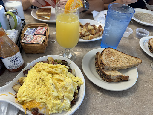 Read moreWhen we arrived we were friendly greated with, have a seat where ever you like. That was the last friendly smile we saw. The server did her job but just. She refilled my coffee once! I had to rip open a million sugar package because that was the only sugar they had. Then finished my breakfast with nothing to drink. My meal came all piled up on one skillet. No room to separate the food. Egg draped across the top. After uncovering the egg It looked like pizza toppings scattered, chedder cheese, potato then the egg. Just a mess @ $14. My kids were never offered a kids menu, only a drawing pad. The eggs Benedict was the worse of any of the local restaurants we frequent. The potato's were under cooked and hard. The egg was over cooked with no run on the yoke. The ice tea tasted like sweet old mop water. I tried to tell the staff about the iced tea before leaving and she just made one excuse after another. We live on sweet tea brewing our own daily. I can tell if tea was made yesterday at first sip. But all I got was excuses and then...totally ignored. She was beyond rude. The coffee(in tiny cups), tea, and soda were all $3.29 each. I won't be return when I truly enjoy The Golden Bear(daily $7.50 food specials) much, much better...or Gabby's....or Cracker Barrell....or Kristines....or Skyway Jack's. Save your time and money dont go to...