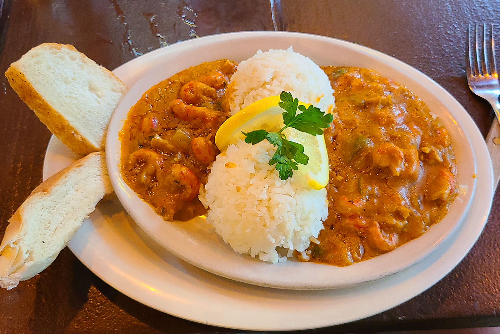 I ordered the Crawfish Etouffee with a side of Okra. And everybody else ordered... most a different dish per person. A basket of fried oysters, fried shrimp and some crawfish cornbread was ordered to keep us happy until the main courses arrived. All the apps were delicious!!