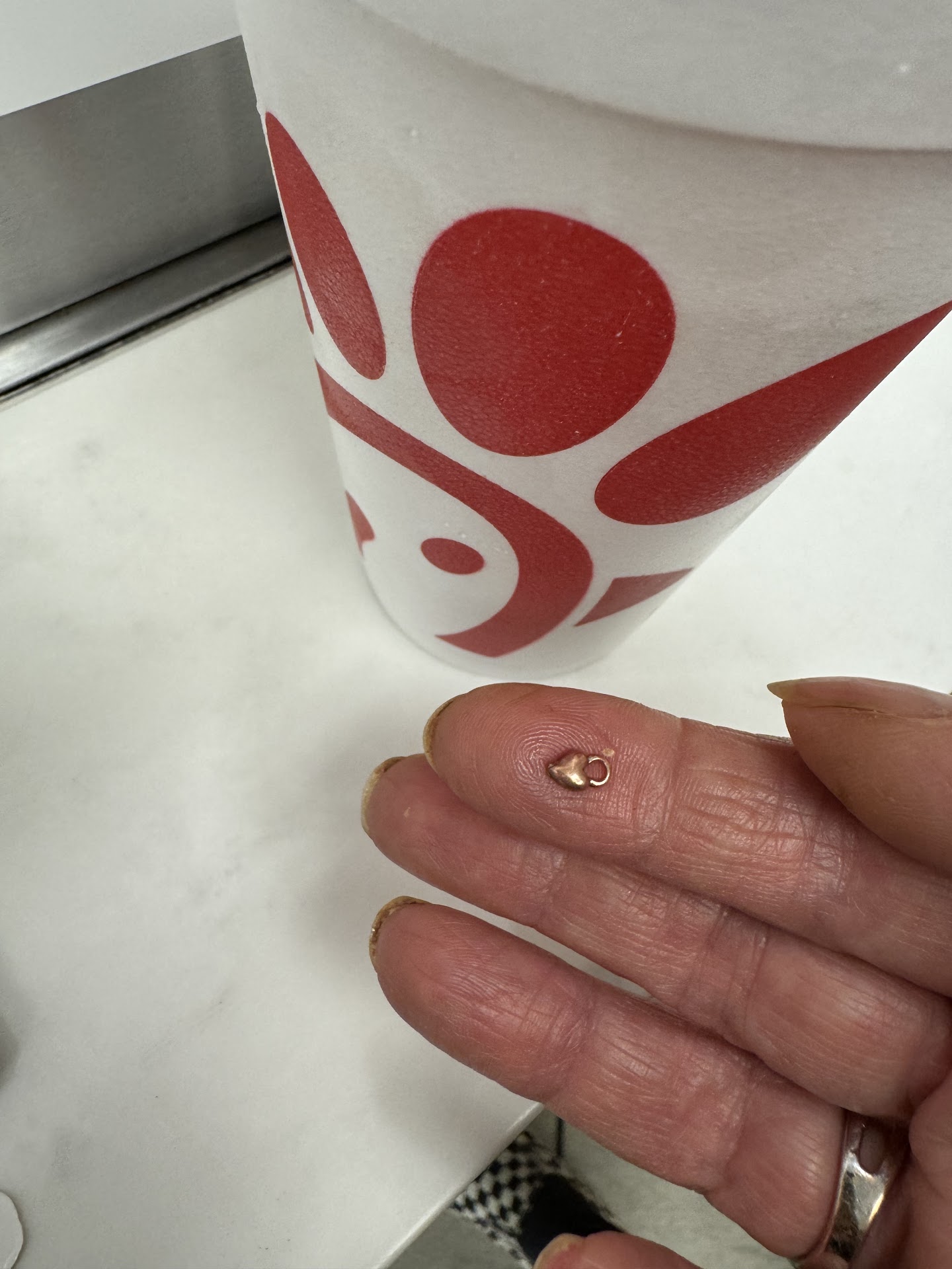 A few weeks ago I held off on leaving this review when I had taken a sip of my drink and felt āTHANK GODā a metallic object in my mouth reached in to take it out and it was a CHARM !!! Yep a charm as in someoneās jewelry from either a ring maybe or who knows ! I went to the Manager and that was more sickening than the charm in my drink ! She said no way oh Iād be happy to make you a new one ! Didnāt seem as though she was curious in the least of whose it might be and addressing the dangers of this ! Well after thinking over the situation I as a business owner of a cafe myself realize it is tufff ! Itās a different day and itās tuff to babysit these employees today just do not give a shit especially when youāre dealing with the younger generation and almost 100% of your employees are just that ! What Iāve dealt with myself as an employer has been just horrible !!!