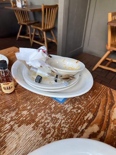 After the biscuit service, which was delicious, we stacked the plates and trash to be collected but it sat there until we left. The dirty napkins and stack of plates placed on the edge of the table should be a clue that they need to be taken.