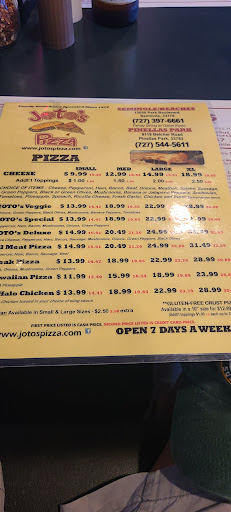Read moreFor many years we ate at the Joto's on 49th St. We moved out of FL a couple years ago and returning to dog sit for friends we were excited to enjoy Joto's pizza again, so 1st night off we went. Oh no! Joto's was closed. Well, happily there were 2 more Joto's so we phoned in a large Pepperoni so we could bring home and enjoy by the pool. So excited for a wonderful Joto's pizza again. NOPE! This was probably the worst pizza I have ever eaten. So very disappointed. We ordered a regular crust that was paper thin with a thick wide crust with no ingredients. Very few pepperoni and we had ordered a little extra sauce - but there was NO sauce! Did someone read the order as 'no sauce'! Oh well - we learned. Will grill my own pizza creation next time. Something I have learned - any REAL pizzeria will offer a Marinara pizza. One of the original pizzas of Napoli. If a pizza joint offers a Marina pizza - they know what they are doing. No marinara - no...
