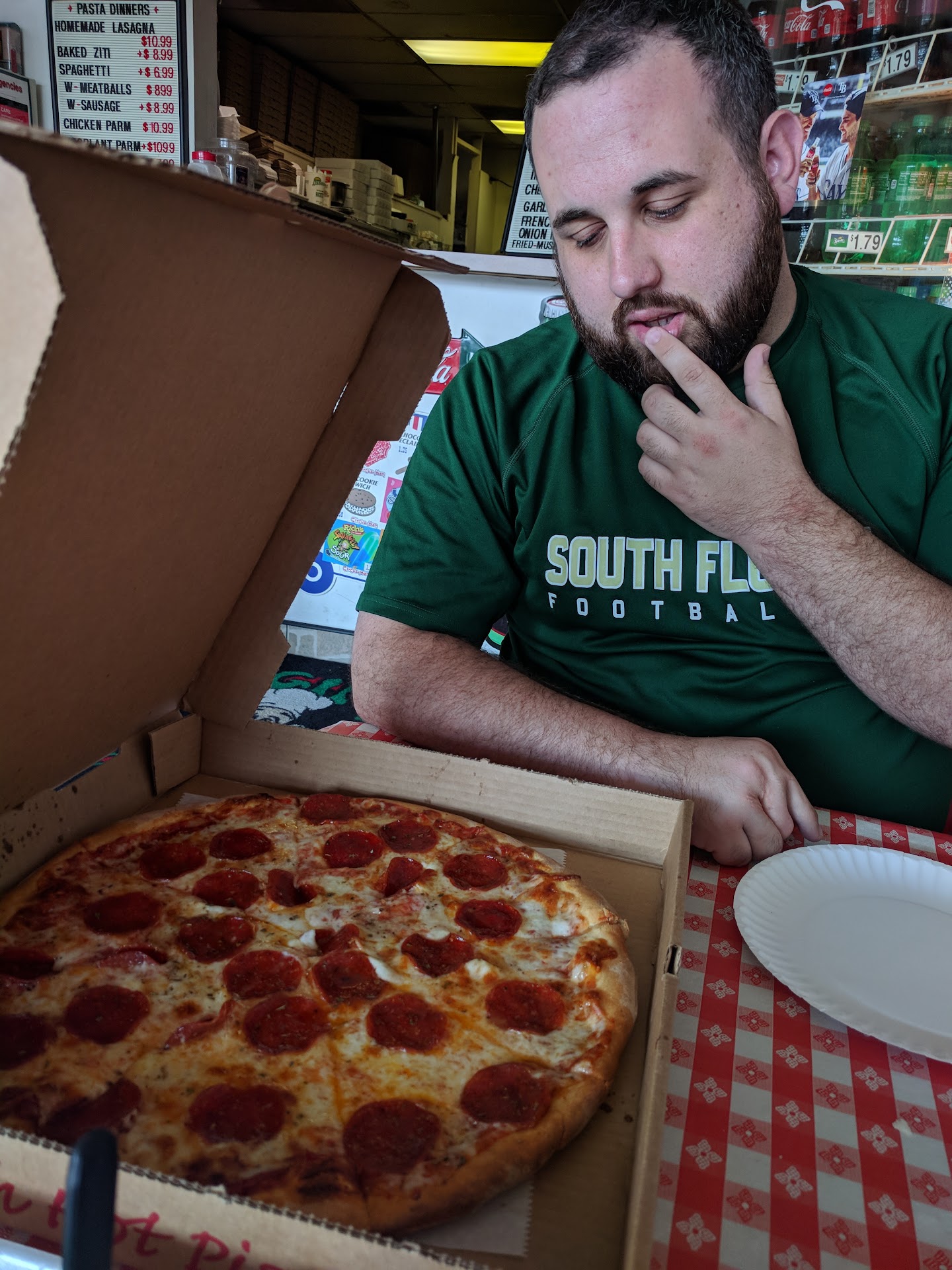 MOOD: 4 stars. This is as much a hole-in-the-wall as you'll ever see. It's tiny, offers very little to no place to sit and eat, and it's not especially appealing to look at. But it's a straight up pizza joint that doesn't attempt to offer any frills along with it. It's like the excellent pizza makes up for the fact that there's not much else. And I can dig it.