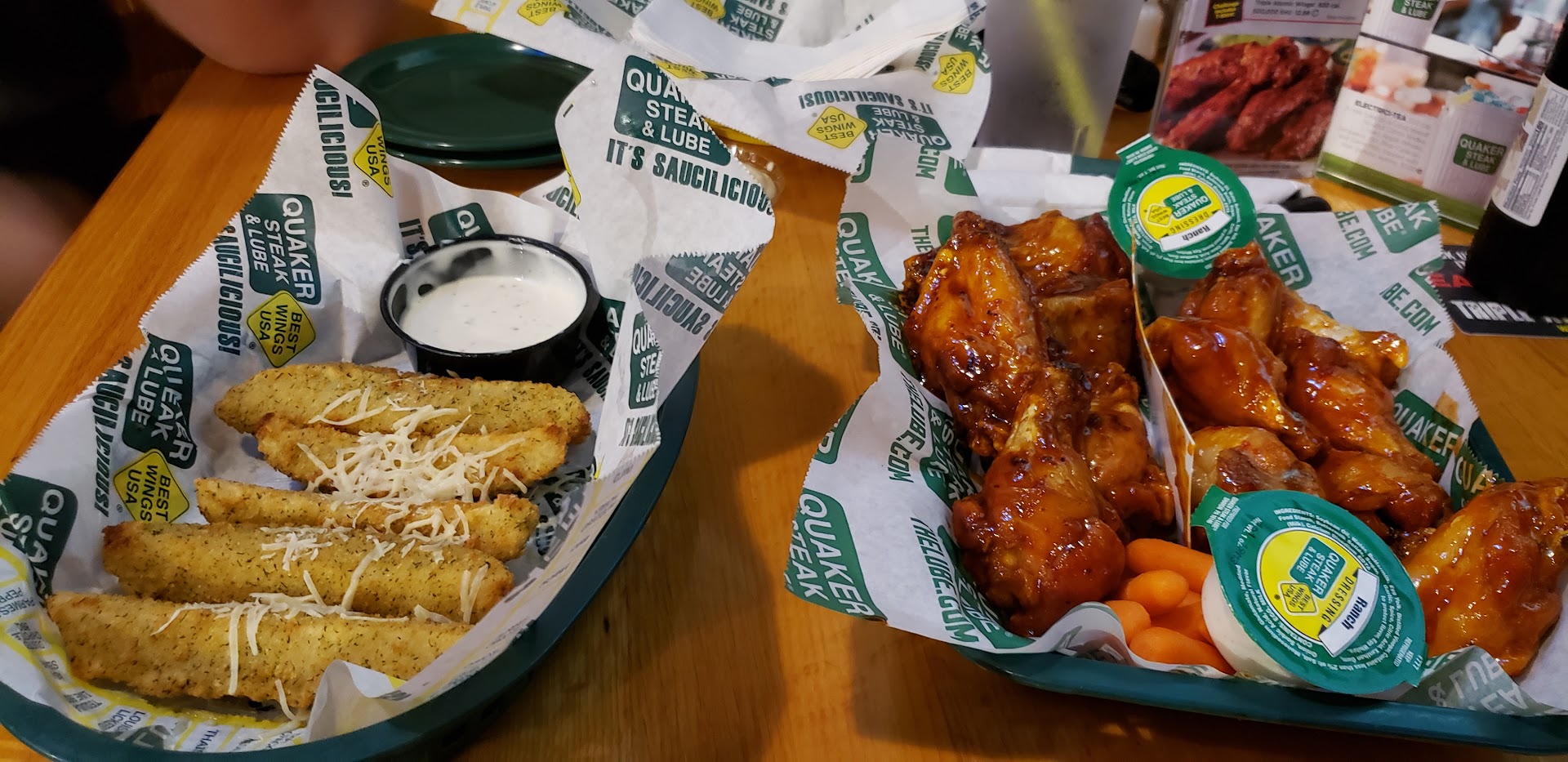 Read moreI'm a little if not a lot disappointed in my experiance today. I love Quaker steak. We order frequently(as im pregnant as I crave there mozzarella planks). I have always gone through the drive through take out, and tonight every single route to the back was blocked off with cones, as there was some kinda of car or bike show going on. Okay fine, so I walk inside where I assume I can pick up my food, an employee tells me "you should be able to drive back there someone's working the drive through window". So I try again... to drive back there. No luck. So AGAIN, I walk BACK inside where at this point someone should've just given me my food that I already paid for and by now is probably cold. Another employee tells me "oh no, on Wednesdays the drive through is closed you have to park and walk back there". Oh. Really? That would've been nice to know ten minutes ago when I FIRST walked in. So now I have to walk back there? Not what I want to do. I walked and got my food... got home.. and what do you know. Cold. Probably bc I was taken for a freaking ride by the employees who couldn't just give me a correct answer to start. And on top of being cold... the Buffalo chicken sandwich I ordered, which is claimed to be "tossed in hot sauce" -taken directly from the menu BTW, is definitely not. Someone just poured sauce in the middle. Half the sandwich wasn't even buffalo. Pictures are attached. What an extreme disappointment. 1 out of 5 starts bc this is the first HORRIBLE experiance I've had. And I mean......