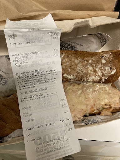 Read moreI came in our of the child 4 rain on a walker with an eye patch..both piece unique accessories new to me & very Awkward & strange. A member of the staff immediately raced to the door to help me enter. Then she saw I was struggling with my backpack & placed it at perfect table for me to sit & eat. She & the young man behind the counter went way over of their way to help me determine what I wanted on my sub as I couldn't read either the paper menu or board well with one eye. ( aka Pirates of the Caribbean eye patch). Ok top of all that they not only made the PERFECT SUB they carried it to my table & practically served it to me. It was a terribly rough day for me & these individual PICKED UP MY SPIRITS & WERE MY RESCUE RANGERS! I BELIEVE THEY REPRESENT THE EXACT CHARACTER & ACTIONS OF WHAT ALL FIREMEN & WOMEN DO EVERYDAY. They just happen to do it in the FIRE HOUSE SUBS SHOP. My kudos. Sincere thanks & respect go out to these individuals & Fire House Subs for employing them. I'm sorry to say because of the condition I was in & my thoughts solely on eating I failed to leave any kind of tip for the staff. I did round up my purchase for the fund raising efforts which I fully support but them forgot the staff. I hope somehow this feedback gets to this location manager & he or she are able to determine which individuals so gallantly came to my aid. For all I know it could've been the entire staff as honestly I could barely see anything or anyone clearly. It's my sincere hope they are recognized appropriately & hopefully publicly. I WILL INDEED BE RECOMMENDING THIS FIRE HOUSE SUBS LOCATION TO ALL MY...