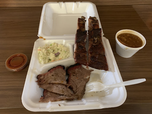 Read moreFirst time to try. Although two stars given, there are some positives hidden in there. Drive through, two meat plate, brisket & pork ribs, bbq beans, coleslaw, pickles, onions, bread and sweet tea ordered. Voice through intercom was definitely detached and grinding through the job. Brisket- smoked well, nice ring, chewy bark and moist. Could have used a tad more s&p but it was a solid 4 stars. Pork Ribs- smoked perfectly. Meat fell off bone and mostly tender. Couldn’t really detect much seasoning. Definitely could stand to get heavier on seasoning. Coke Slaw- over sauced but, proper fresh crunch. BBQ Beans- pork and beans doctored up. Didn’t care for them at all (and I like pork and beans) Pickles, onions, bread- not delivered. I can go with just meat and these three items. For them to be forgotten killed the whole experience. Sweet Tea- spot on Finally, the drive through attendant (Susan R according to the receipt) was indeed just as disengaged in person at the window as was perceived through the speaker. Bad day perhaps. Doesn’t encourage repeat patronage.